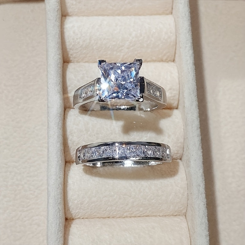Square Zirconia Couple Rings Men's Proposal Women's Wedding Rings