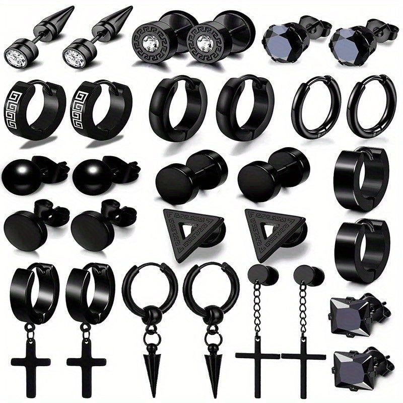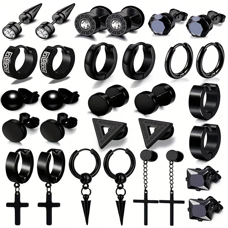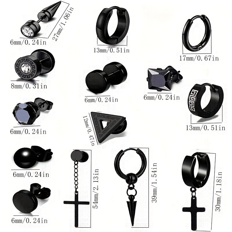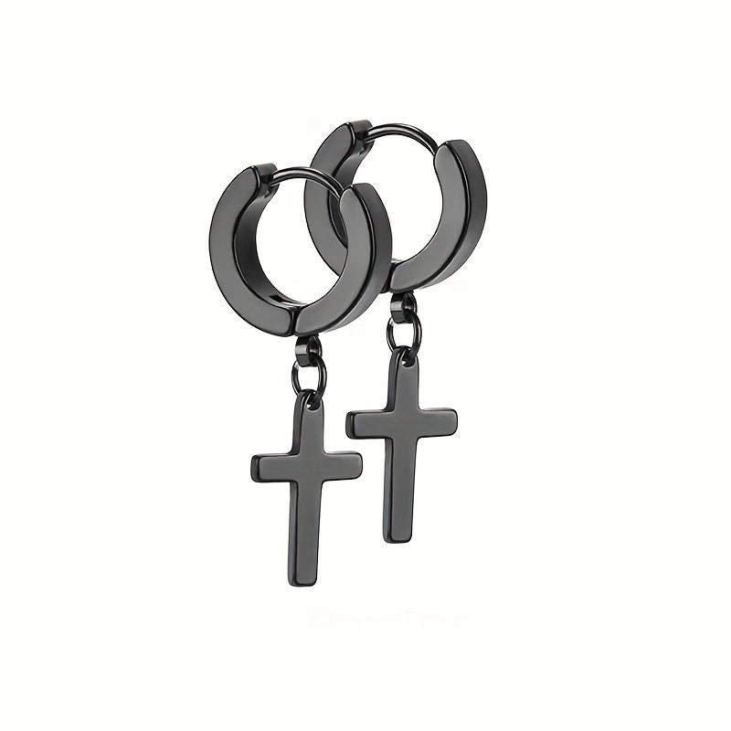 This set includes stylish stainless steel cross earrings with sparkling zirconia stones. Perfect for adding a touch of elegance to any outfit.
