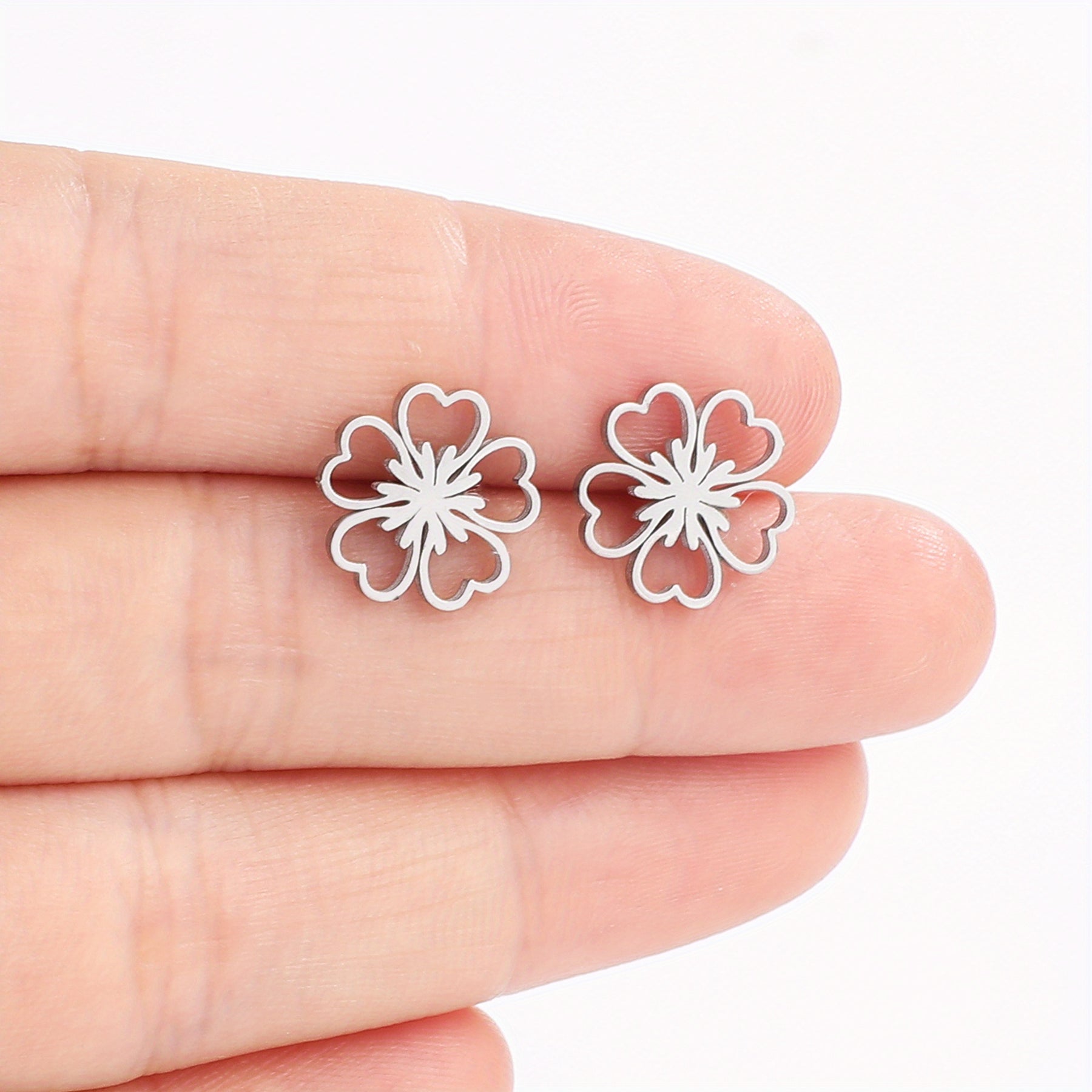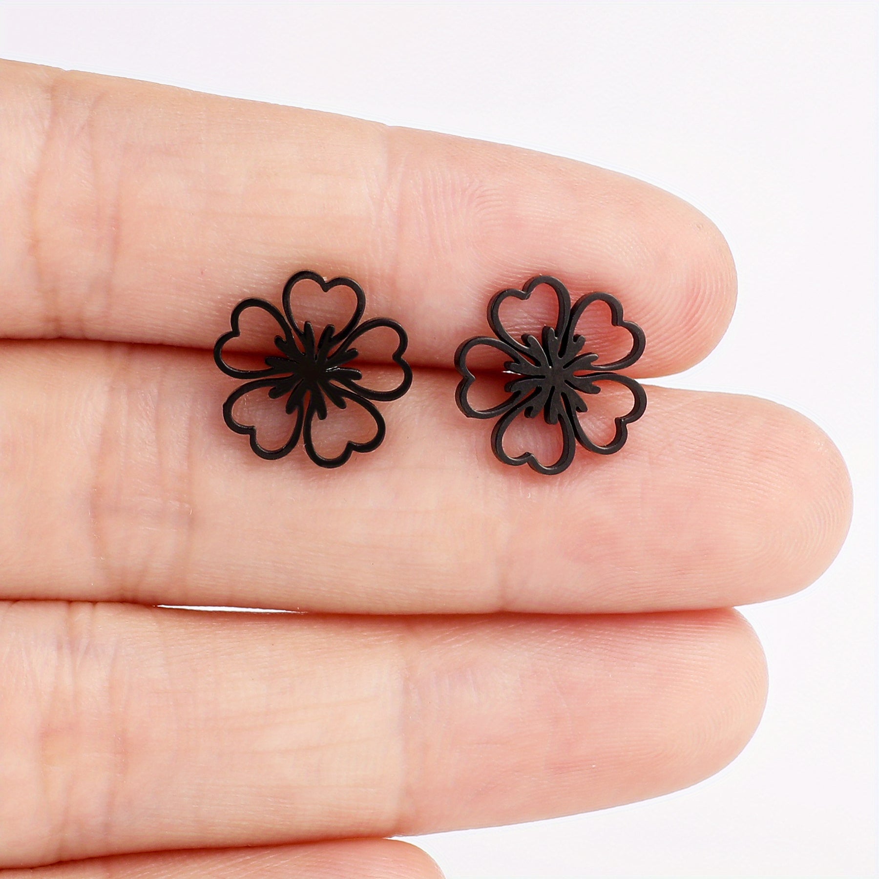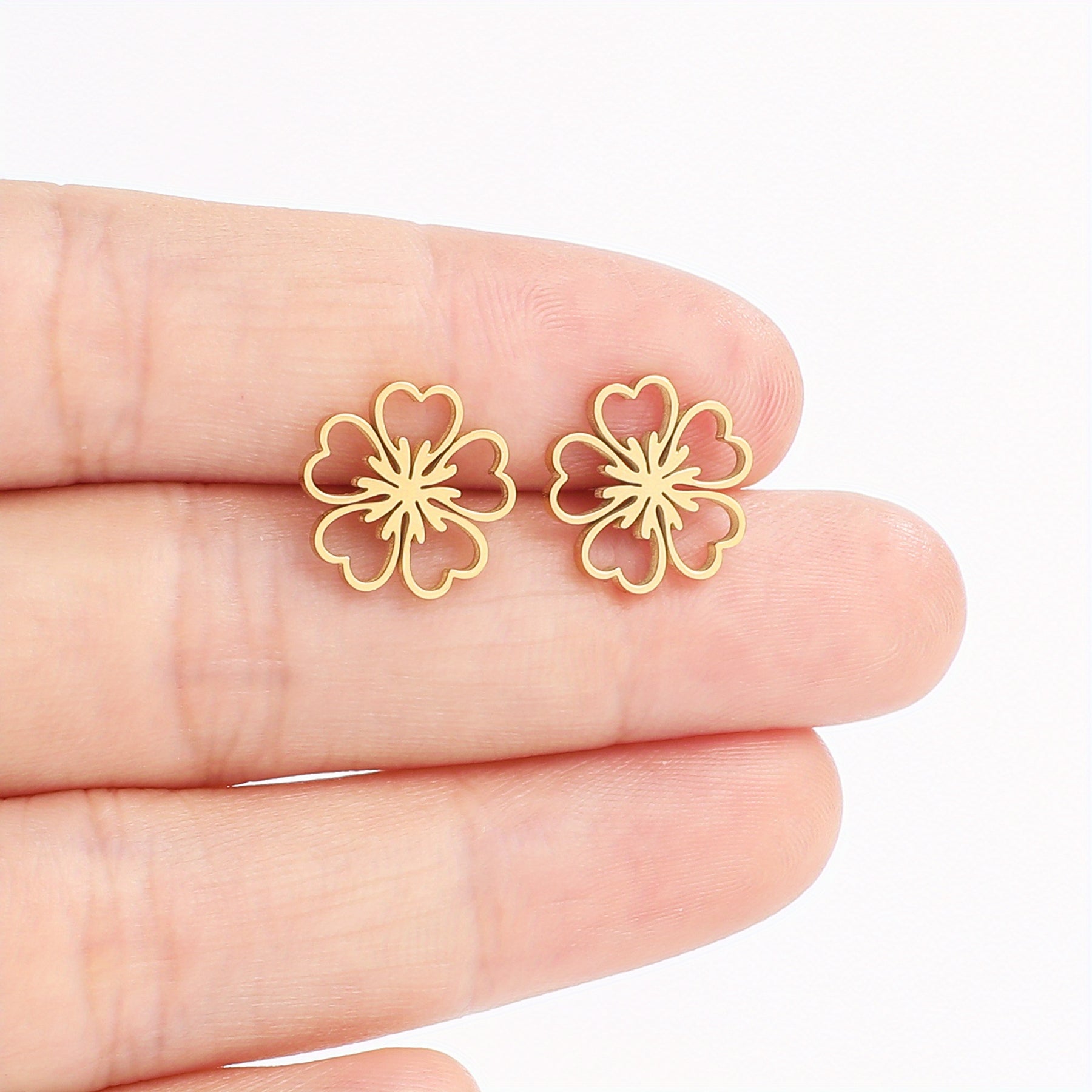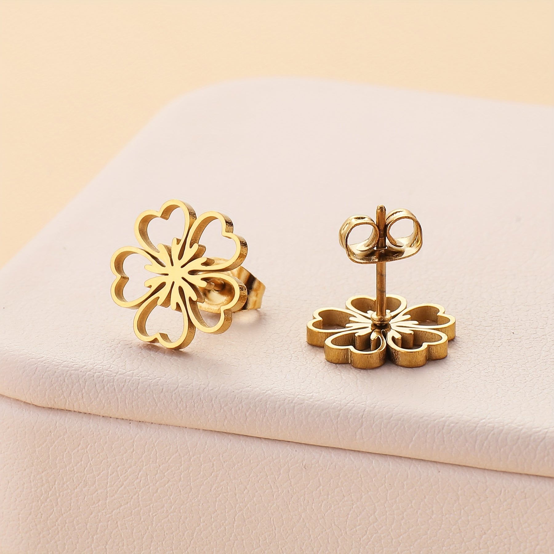 These minimalist earrings are perfect for daily wear or special occasions. The golden-tone hoop adds a touch of elegance to the stainless steel flower design.