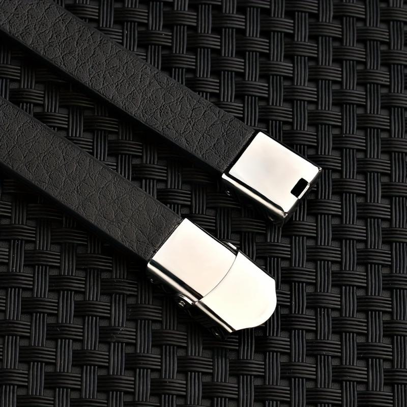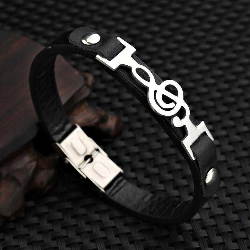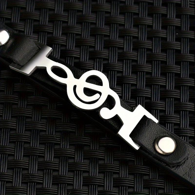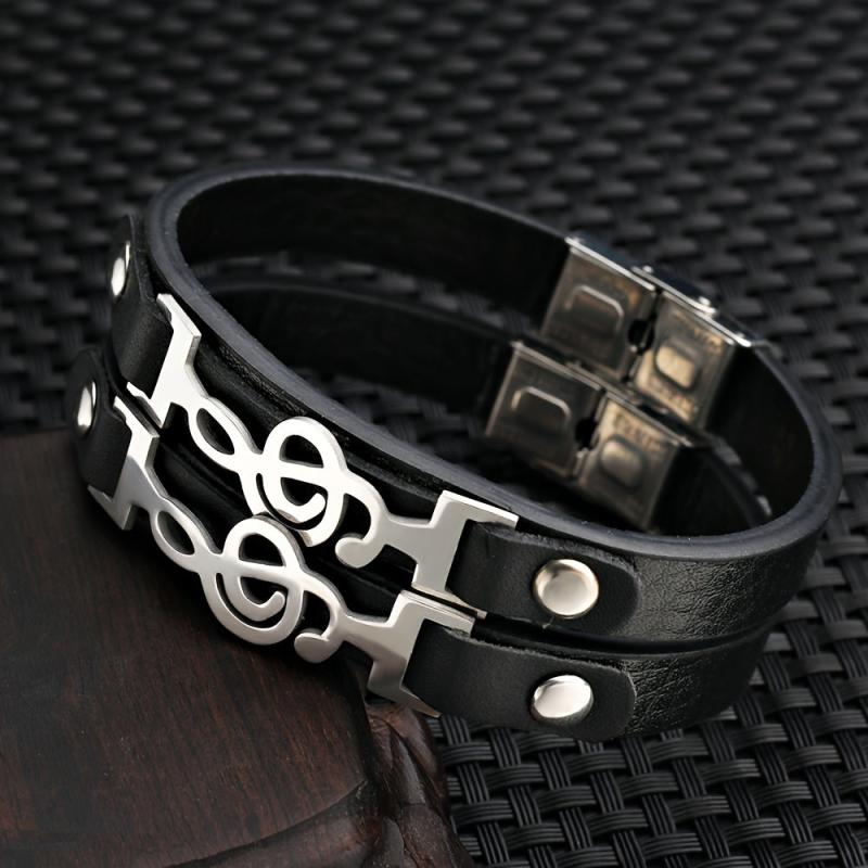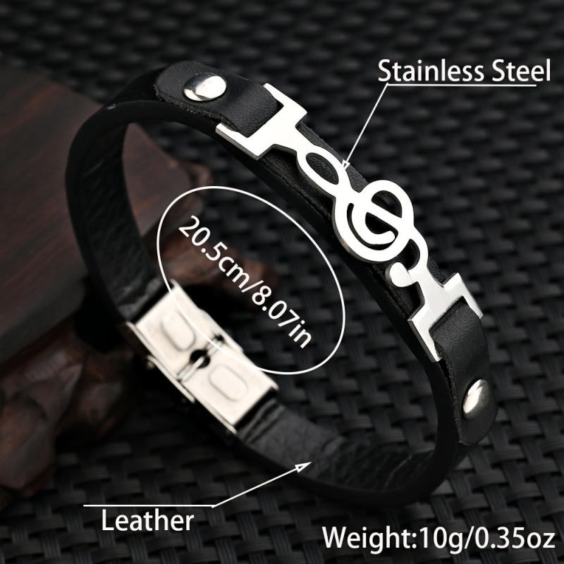 This stylish cuff bracelet features a music symbol design, perfect for daily wear. Made of high-quality stainless steel and PU leather.