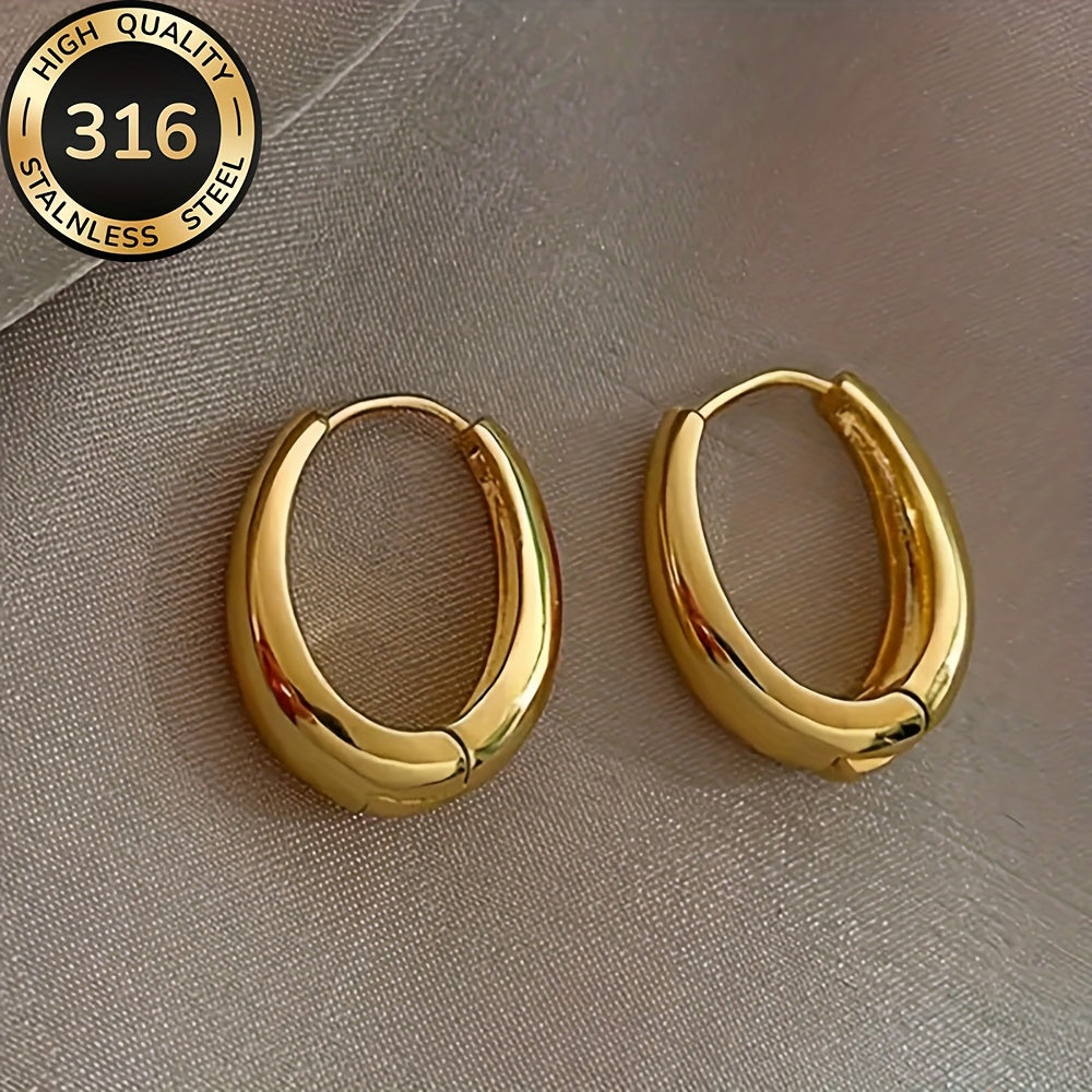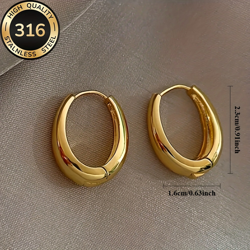 Stainless Steel Oval Earrings 18K Golden Plated Hypoallergenic