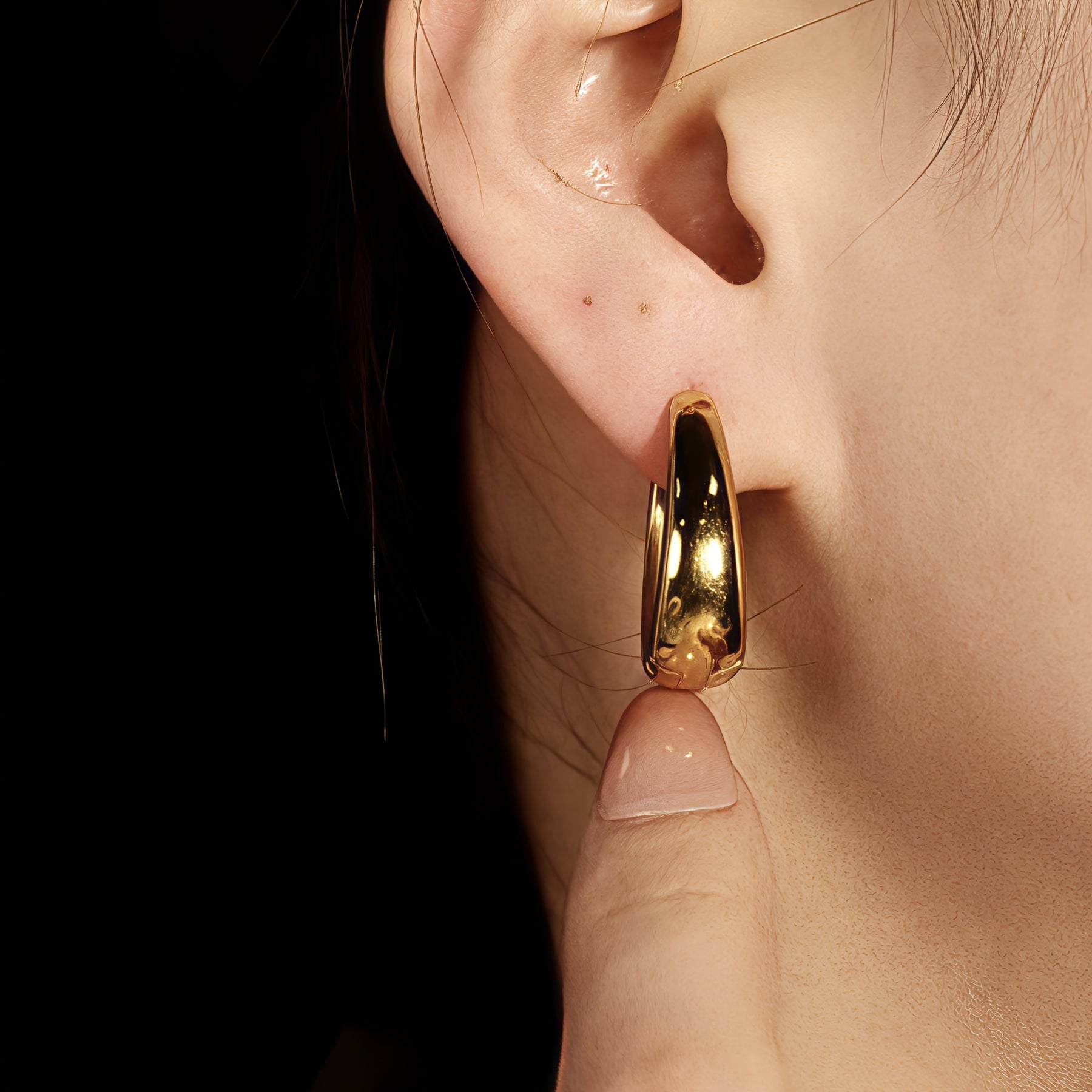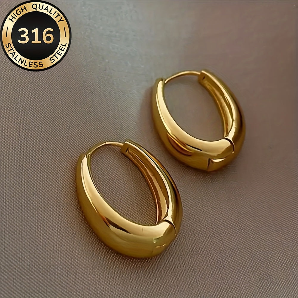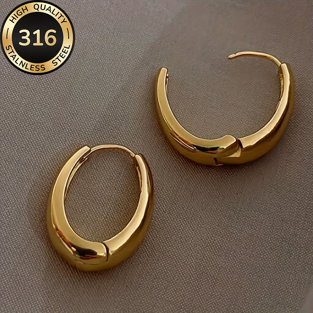 These oval hoop earrings are crafted from hypoallergenic stainless steel with 18K golden plating for a luxurious look. They are anti-fade, comfortable to wear, and versatile, making them a high-fashion accessory for women.