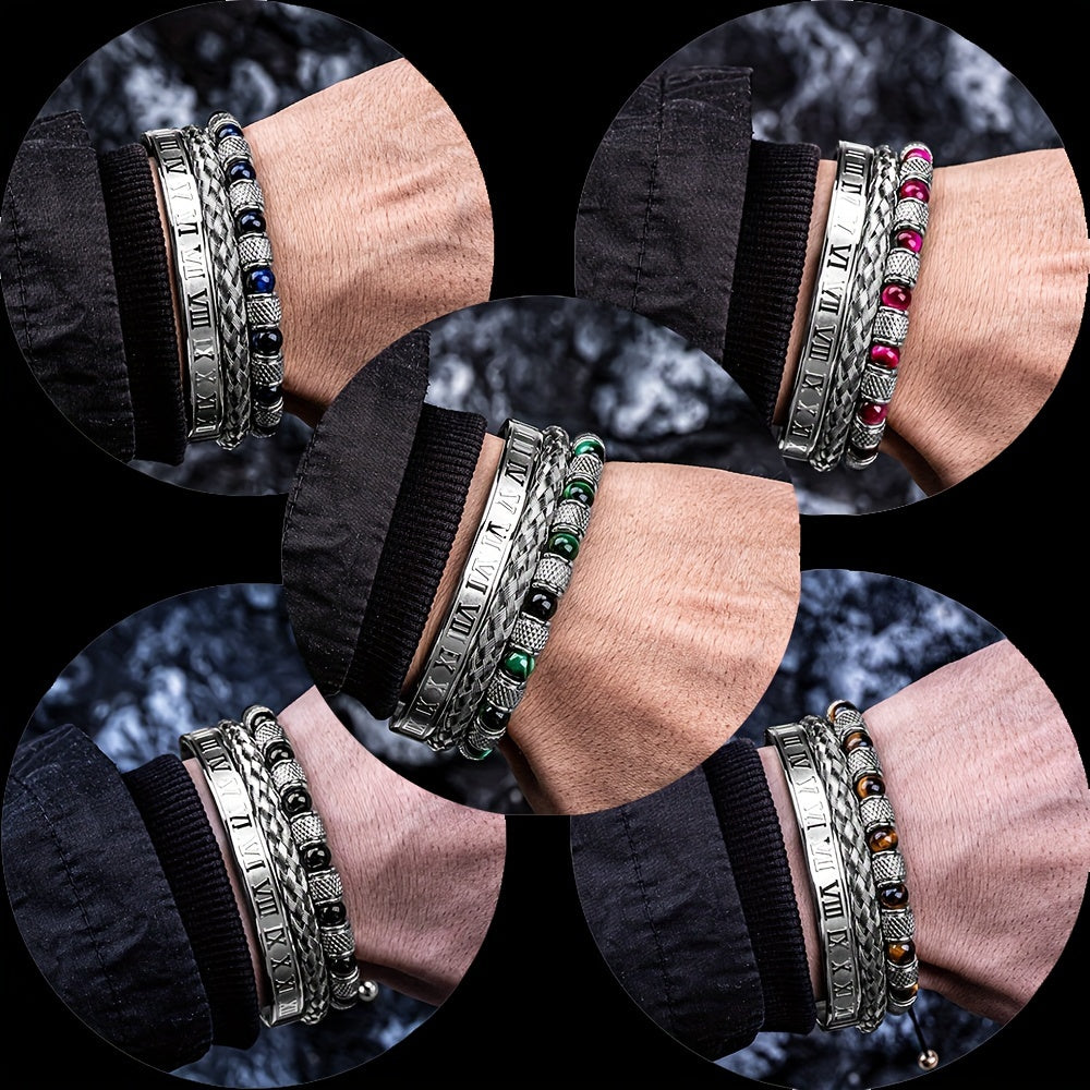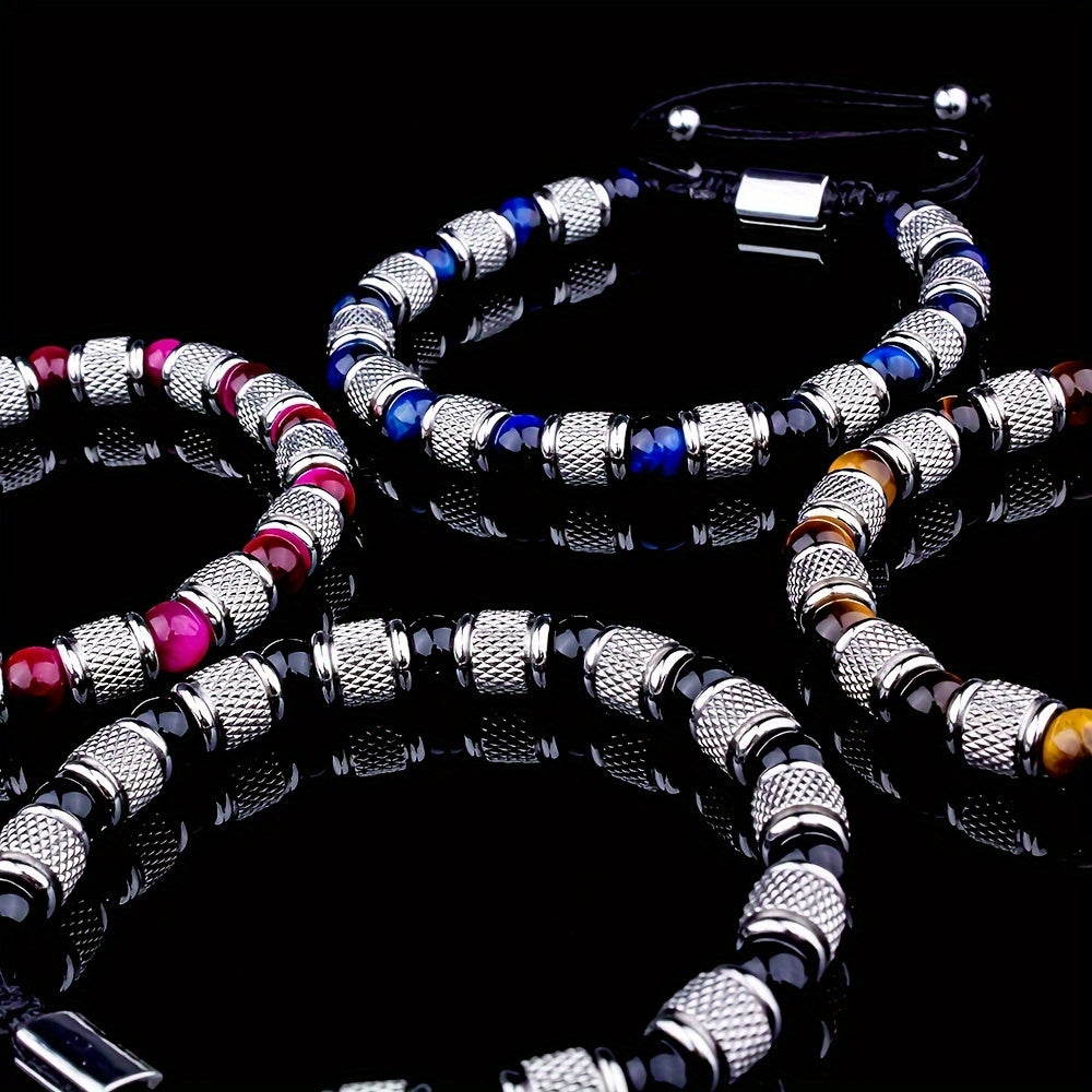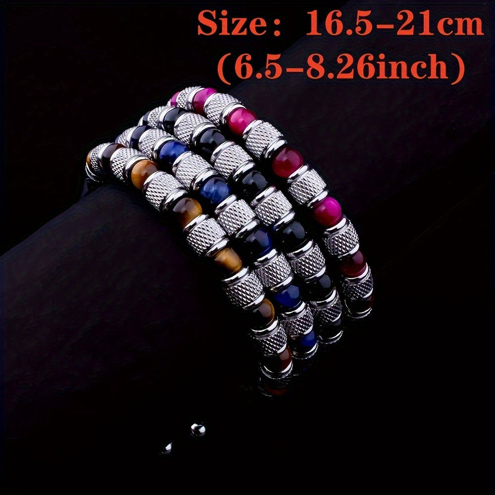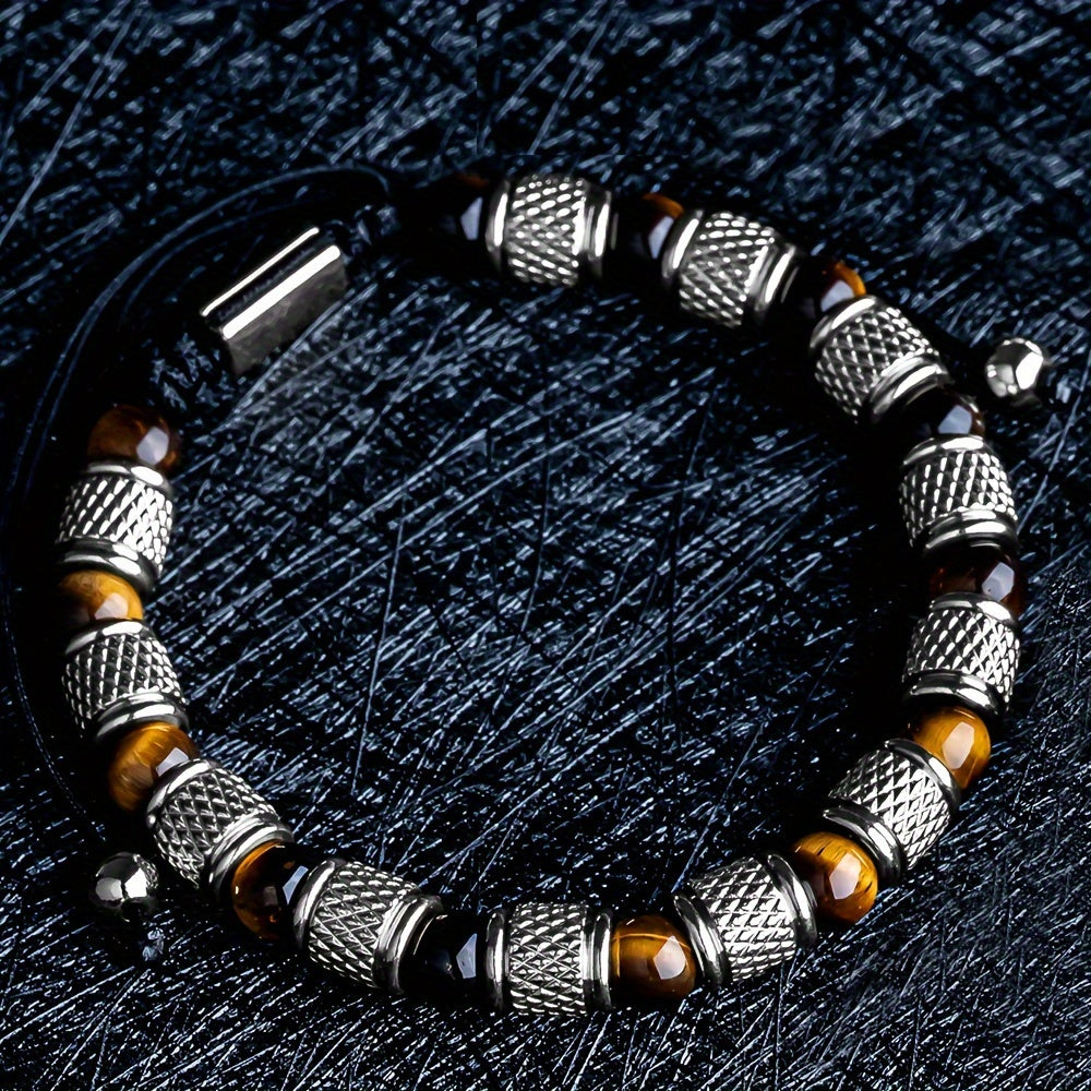 Elegant men's bracelets made of high-quality 304 stainless steel with tiger's eye beads. Perfect gift for couples.