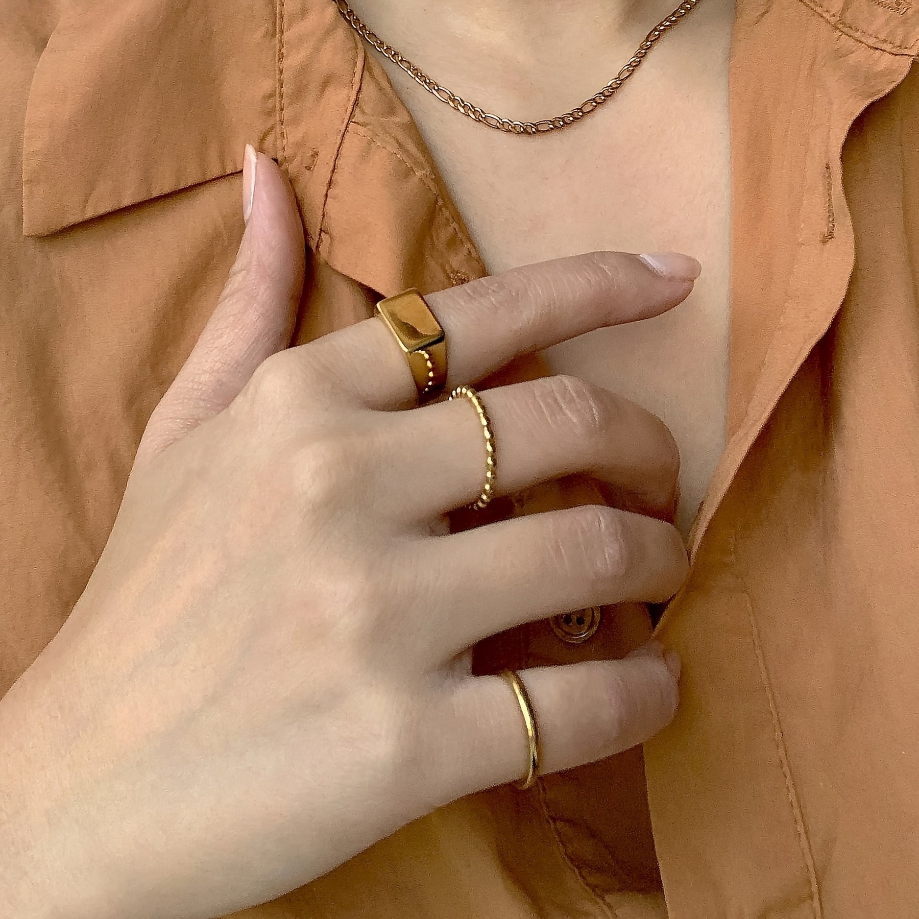 This stainless steel square ring is a sleek addition to your casual attire. It adds a touch of modern style to your look.
