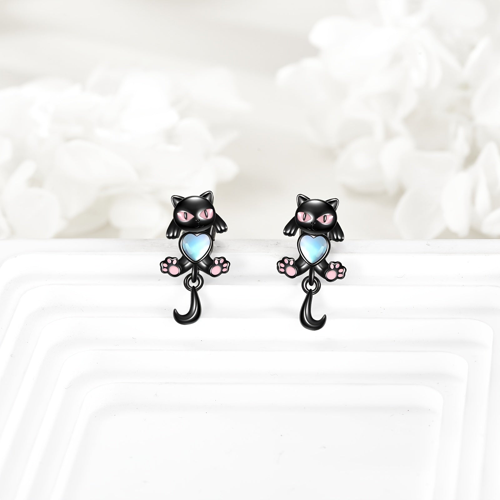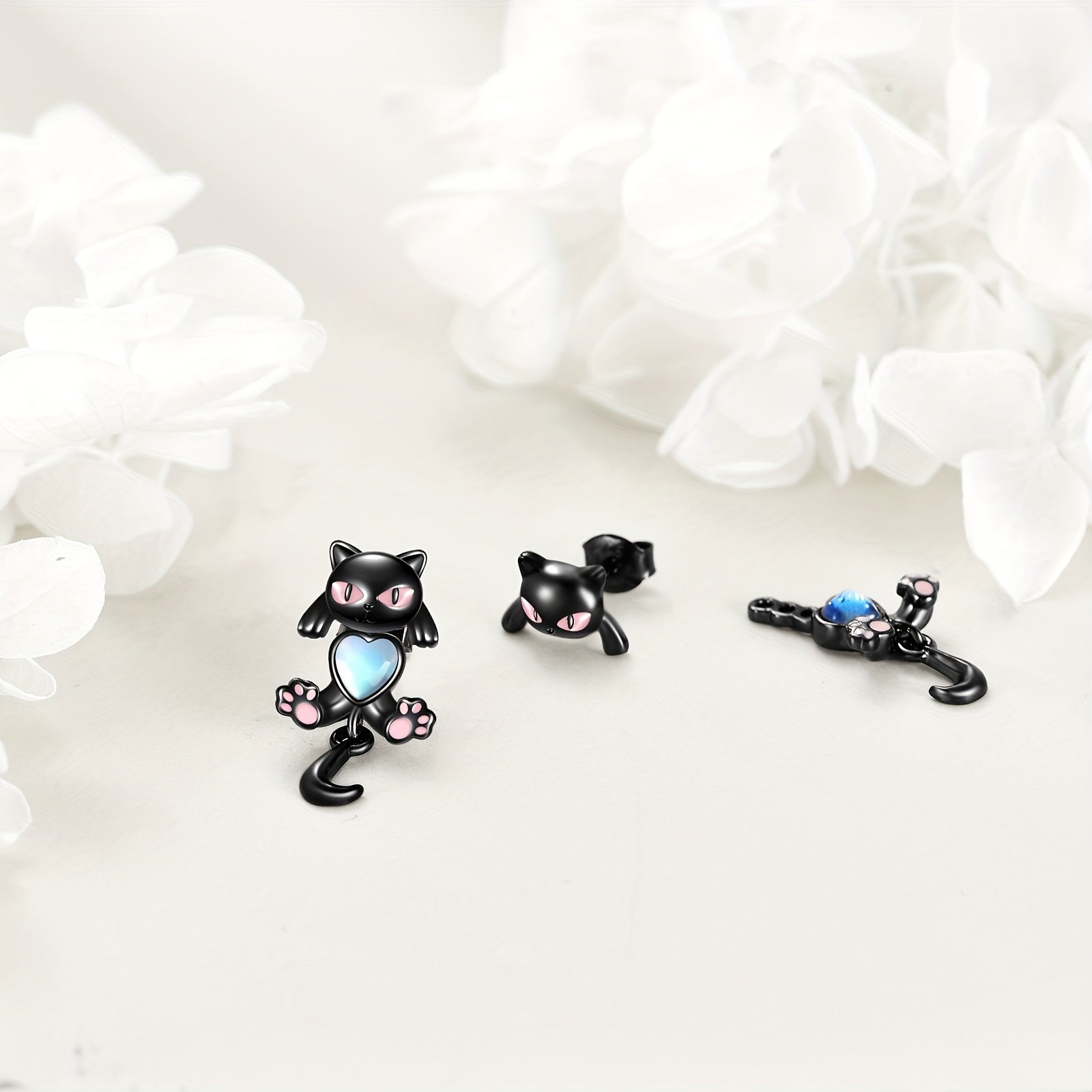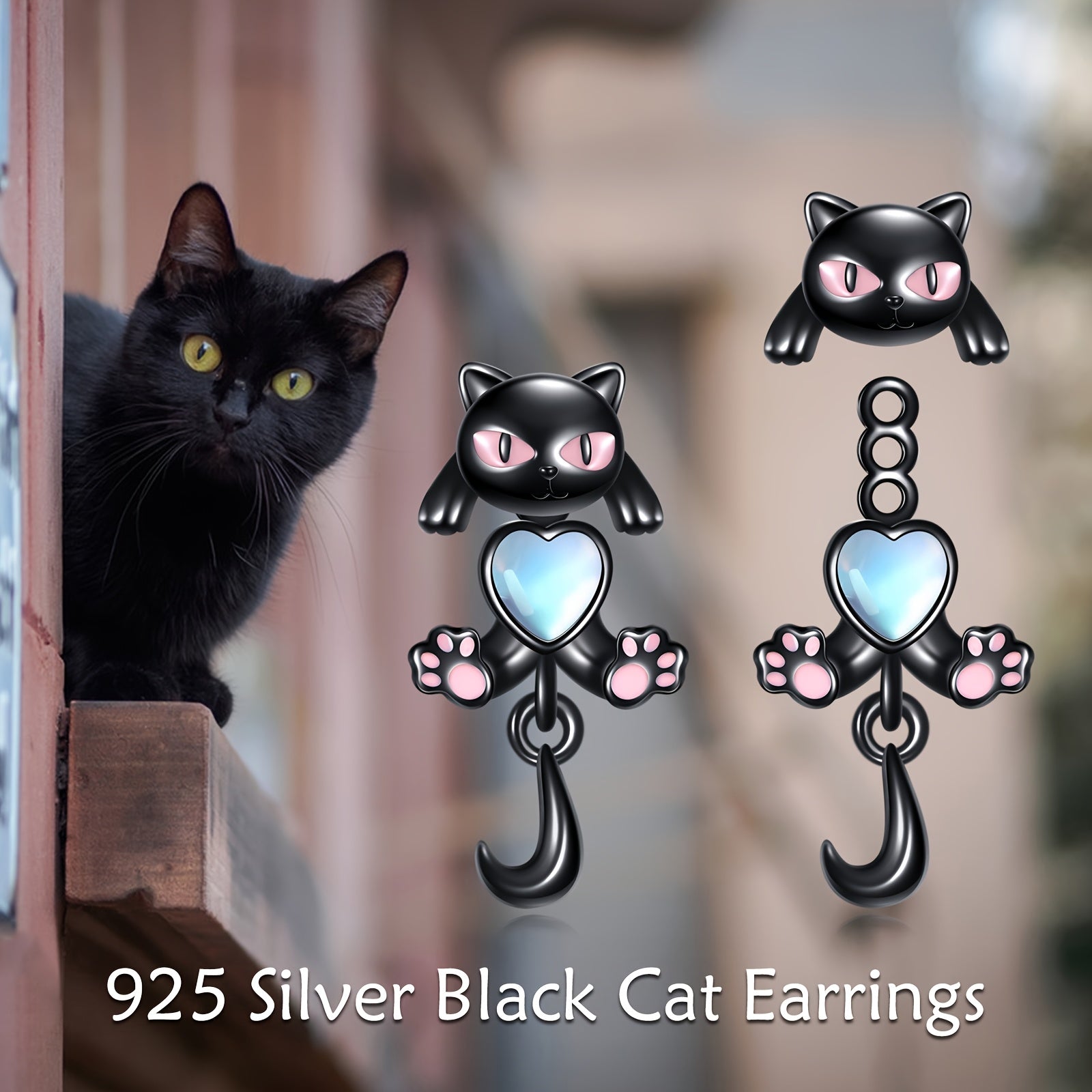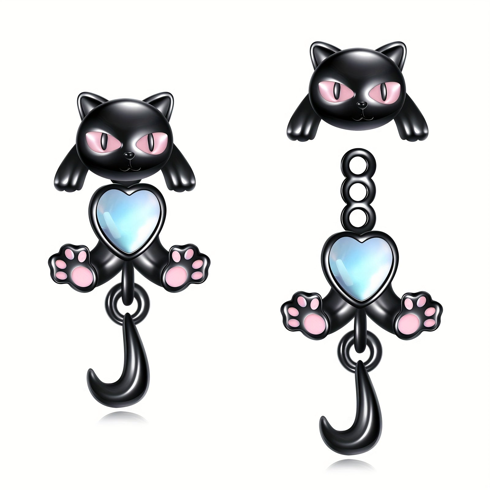 Adorable front and back cat earrings crafted from 925 sterling silver with moonstone accents. Perfect for cat lovers and animal enthusiasts.