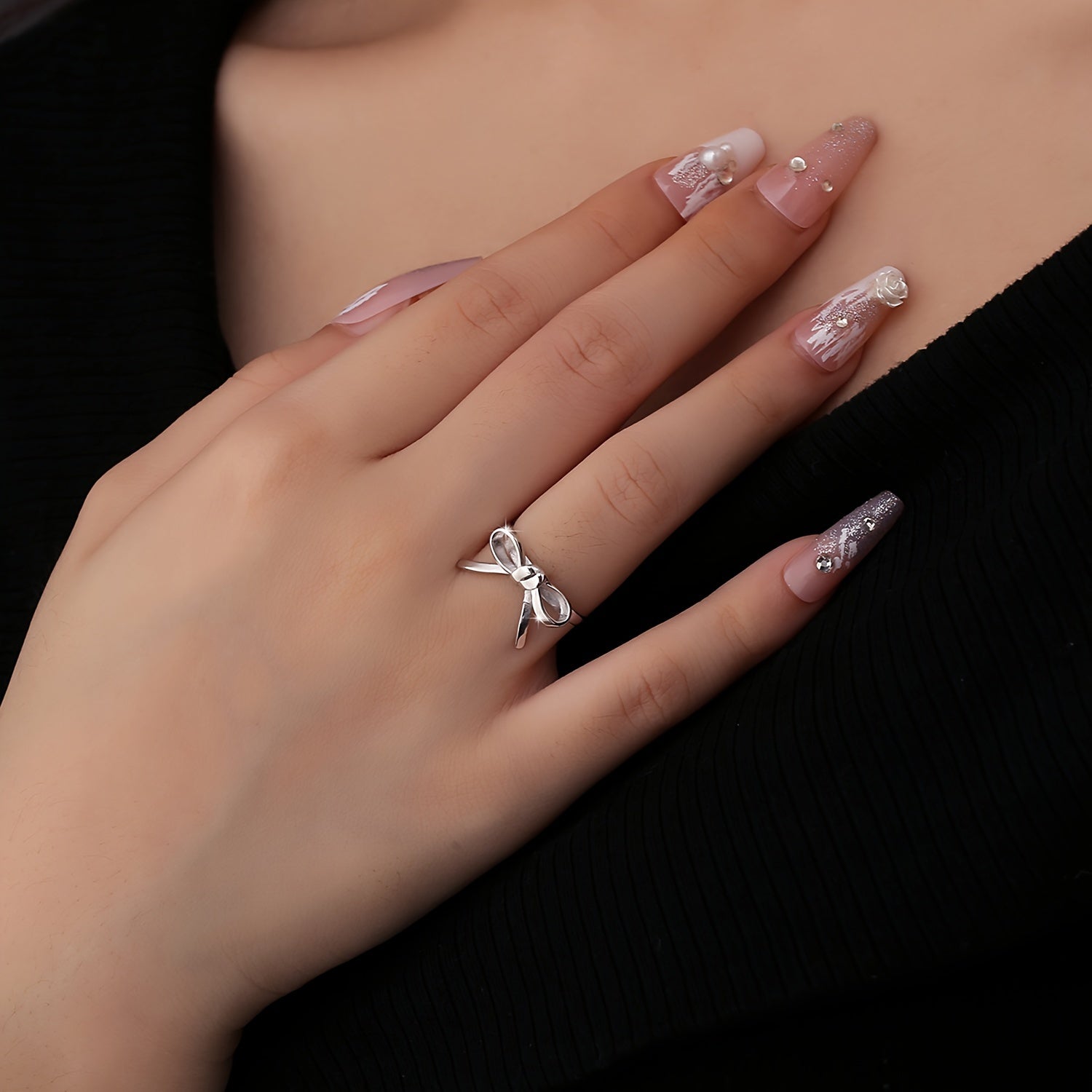 Add a touch of personality with this three-dimensional ribbon bow ring. Made of S925 sterling silver, light and versatile for any occasion.