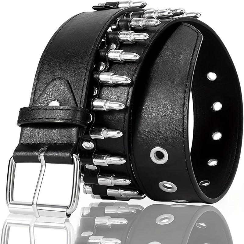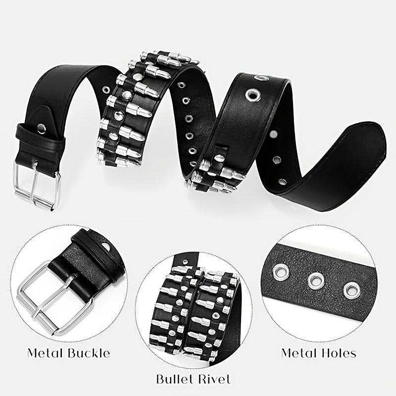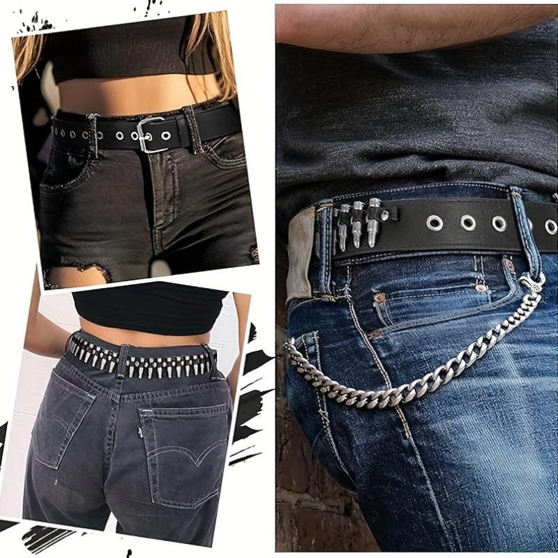 This studded faux leather belt is perfect for both women and men who love goth punk style. The metallic square buckle adds a bold edge to your outfit, while the adjustable design allows for a perfect fit. Use it as an alternative belt for your jeans or to cinch your waist for a unique look.
