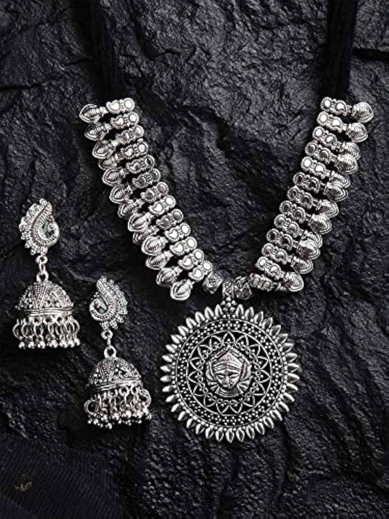 Elegant oxidized jewelry set with intricate design, perfect for all occasions.