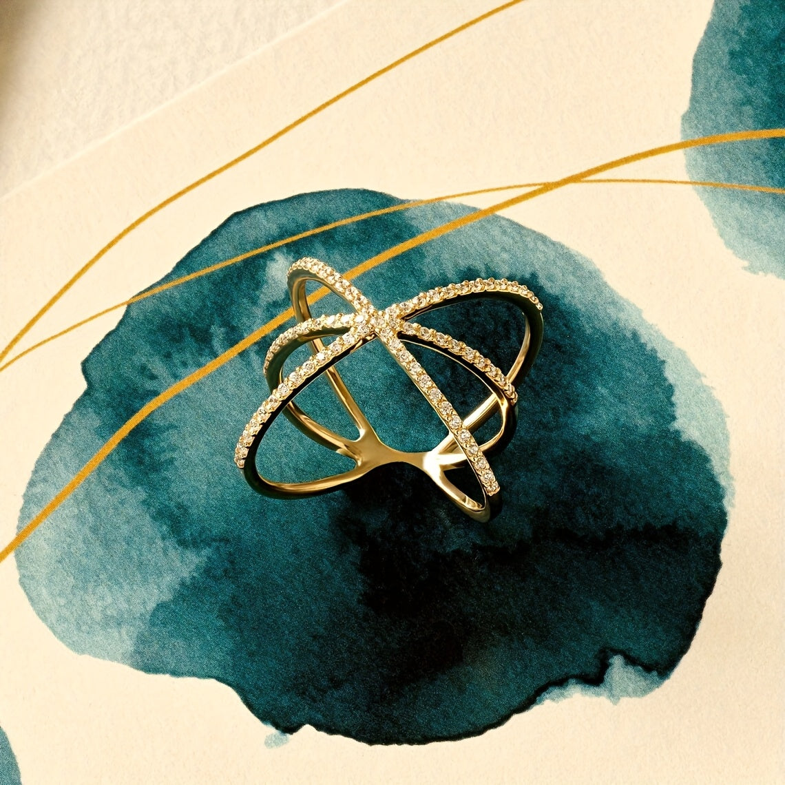 Elegant multilayer ring with a golden tone, ideal for engagement, weddings, and banquets. French-inspired design with sparkling details.