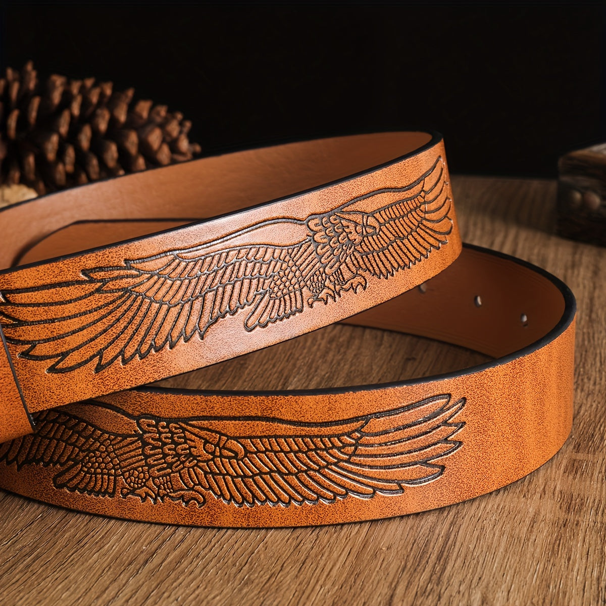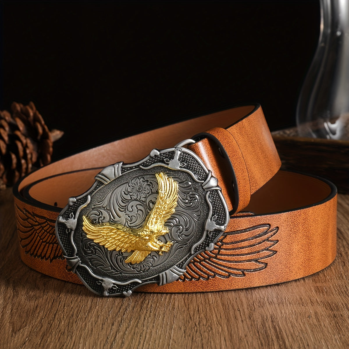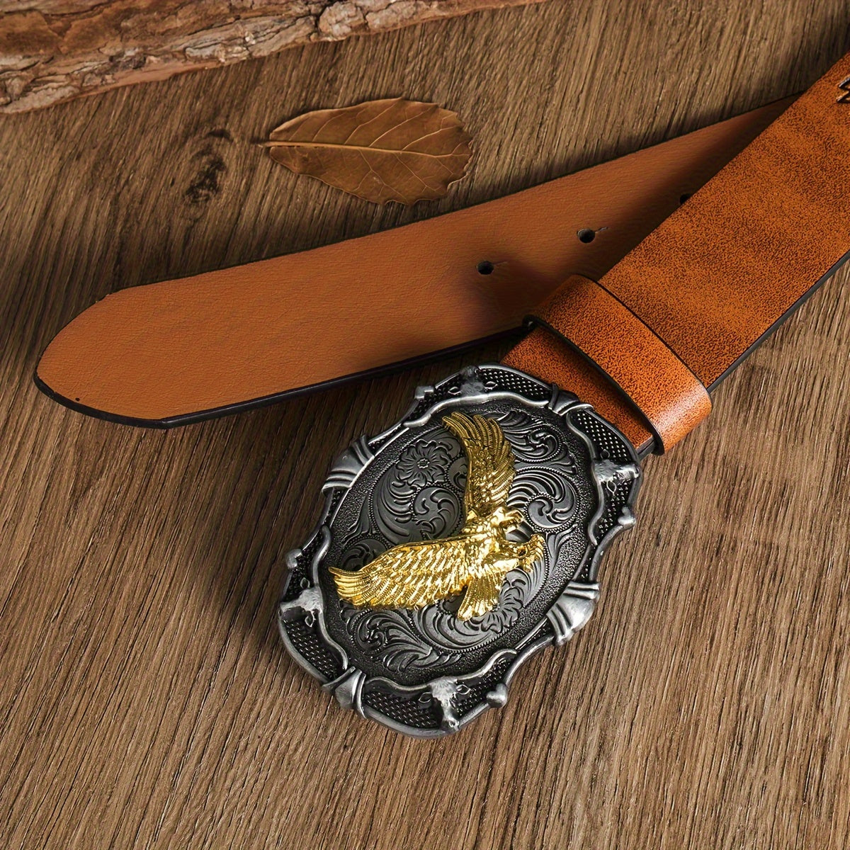 This Western style denim belt buckle features a flying eagle design, perfect for men and women. The smooth buckle adds a touch of elegance to your outfit.