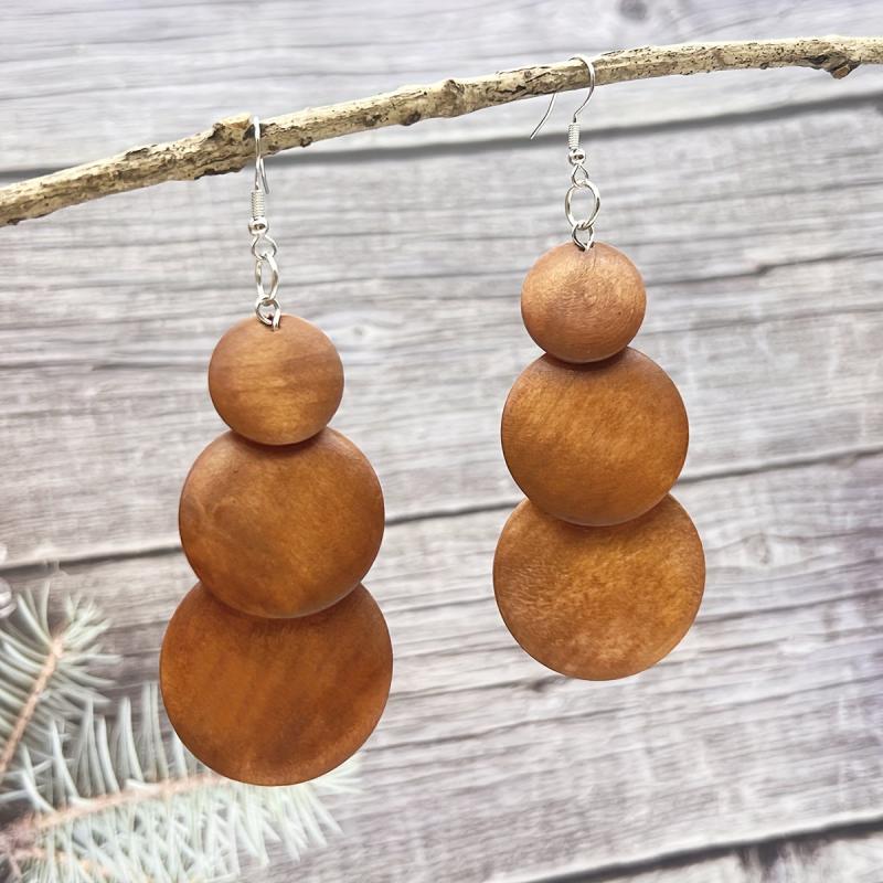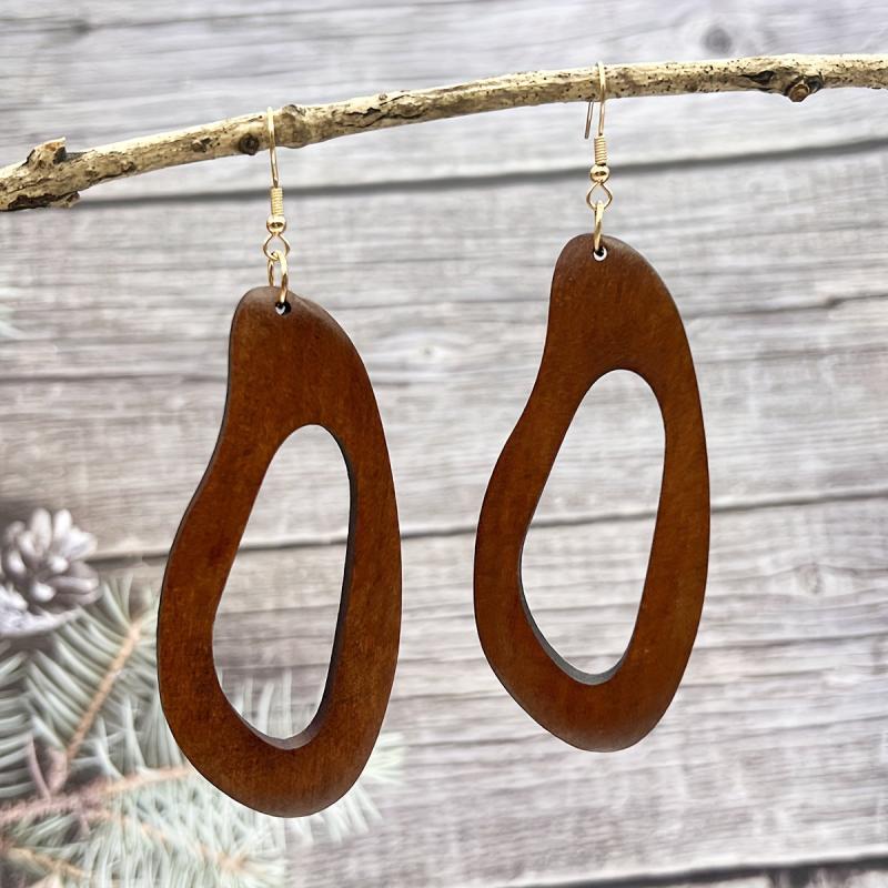 Stylish Retro Coffee Wooden Pendant Earrings Bohemian Vacation Style
