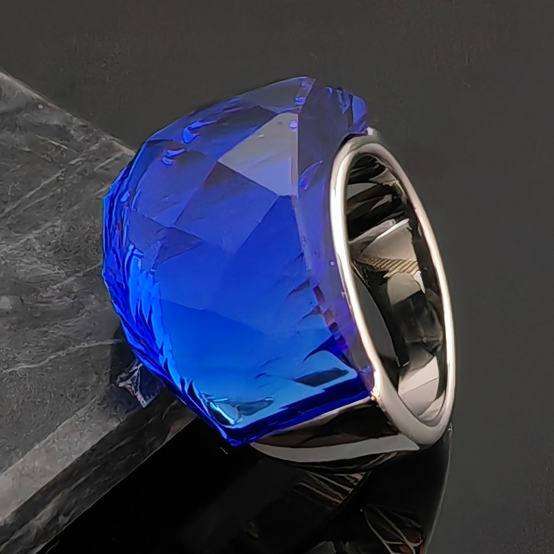 This stunning ring is made of high-quality Steel 316 stainless steel and features a synthetic gemstone cubic artificial crystal glass in a geometric design. Perfect for female titanium steel enthusiasts.