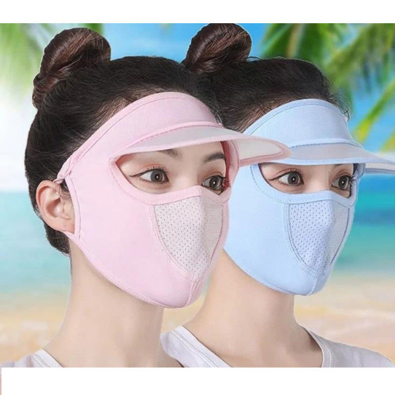 Stay protected from the sun with this breathable and comfortable sunscreen mask featuring a brim for added shade. Made of ice silk material with UV protection, perfect for outdoor activities.
