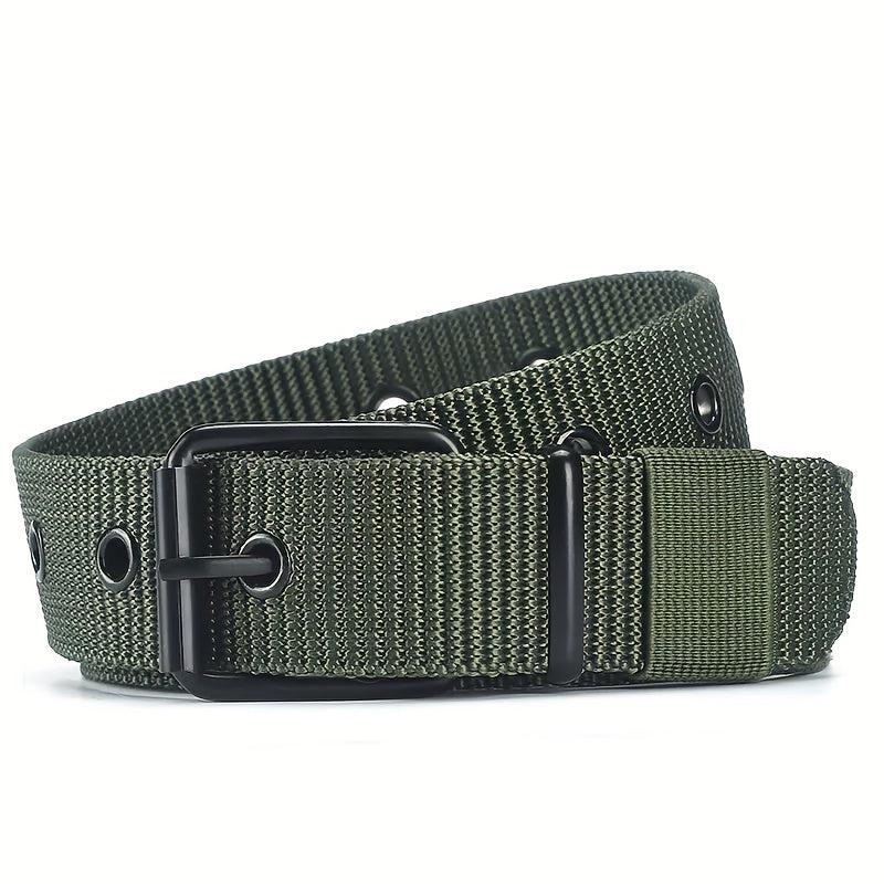This tactical men's belt is made of durable nickel nylon webbing and canvas, perfect for outdoor activities like hiking and camping. It features a double iron buckle and a funky style, making it a great gift idea.