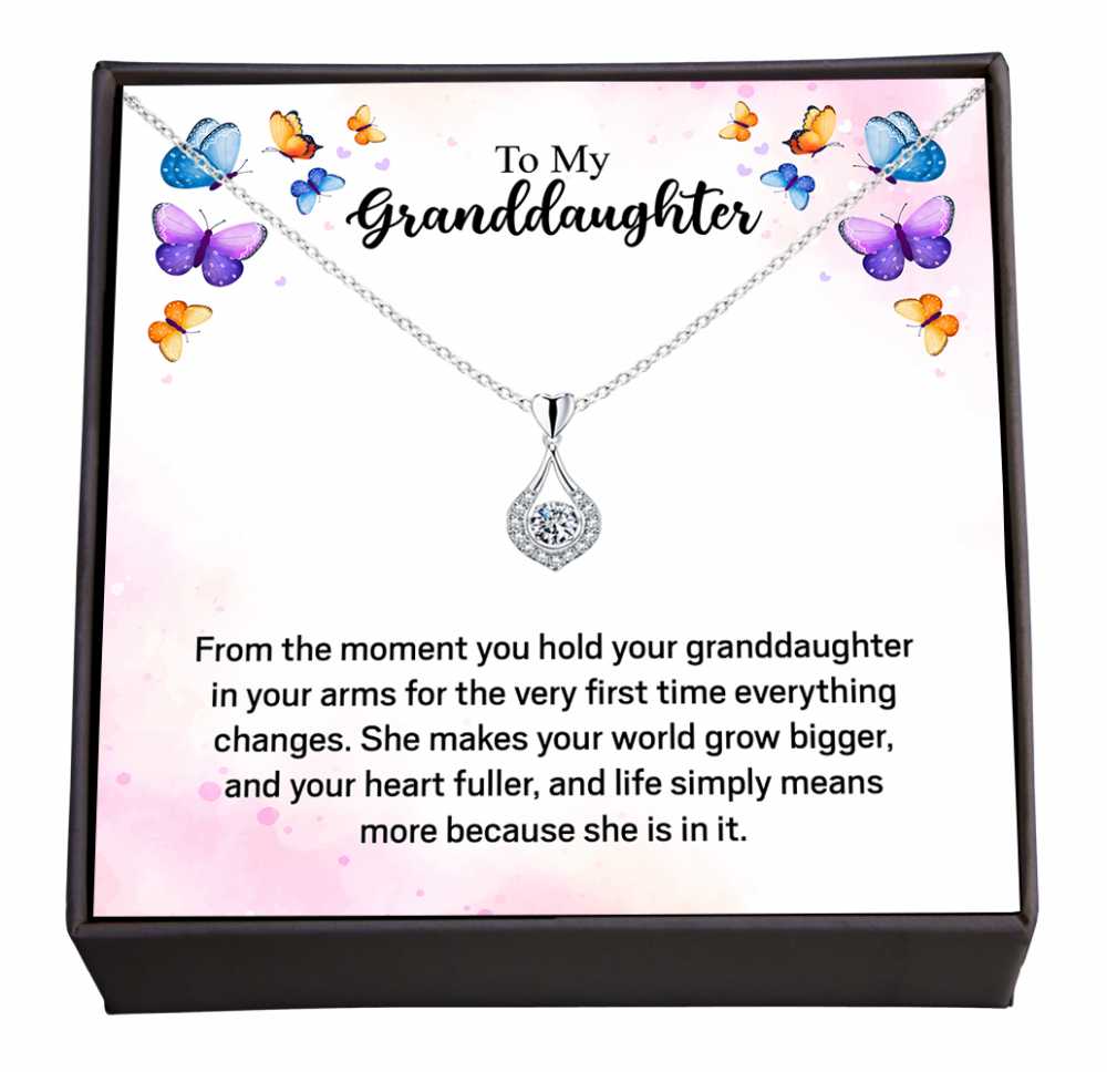 Bling Queen is an affordable fashion jewellery brand with various product types like bracelets, necklaces, earrings, rings, etc. suitable for women, men and kids. The silver plated zirconia water drop pendant necklace is a beautiful piece, specially crafted for your granddaughter. This elegant necklace features a stunning water drop shaped pendant adorned with sparkling zirconia, reflecting light with every movement. The pendant hangs gracefully from a delicate chain, designed for comfort and style. Accompanying the necklace is a charming message card featuring a light pink background, which beautifully sets the stage for the enchanting butterfly design. Your personalized message can be included, conveying your love, encouragement, and the special bond you share. Together, the necklace and message card create a heartfelt gift that she will treasure. his combination of exquisite design and meaningful sentiment ensures that she not only enjoys wearing the necklace but also cherishes the love it represents.Sign up to receive your Bling Queen welcome gift and be the first one to know about giveaways, VIP offers and more