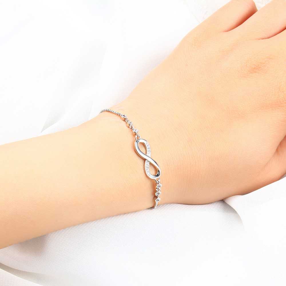 - Product Particulars: This bracelet is made of high quality material plated with infinity shape silver chain and studded with cubic zirconia stones. Crafted with secure, comfortable and easy closure. This bracelet comes with message card.