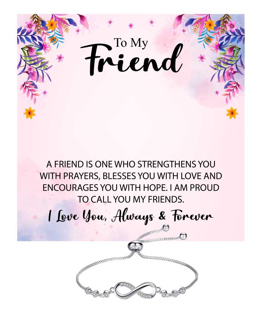 Bling Queen is an affordable fashion jewellery brand with various product types like bracelets, necklaces, earrings, rings, etc. suitable for women, men and kids. Introducing our infinity shape cubic zirconia adjustable bracelet for women, a perfect blend of elegance and meaning. This exquisite bracelet features a beautifully crafted infinity design, symbolizing endless love, adorned with sparkling cubic zirconia crystals that mimic the brilliance of diamonds. Its adjustable fit ensures comfort for any wrist size, making it versatile for various occasions, from casual outings to formal events. this bracelet makes a thoughtful gift for birthdays or just to show someone you care. Whether worn alone for a minimalist look or stacked for a trendy layered effect, this bracelet is a must have addition to any jewelry collection. Accompanied by a heartfelt message card that emphasizes themes of love and connection,
