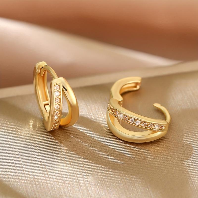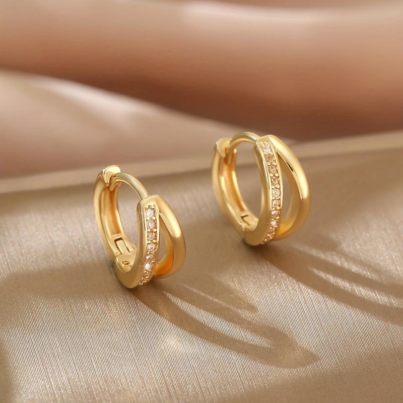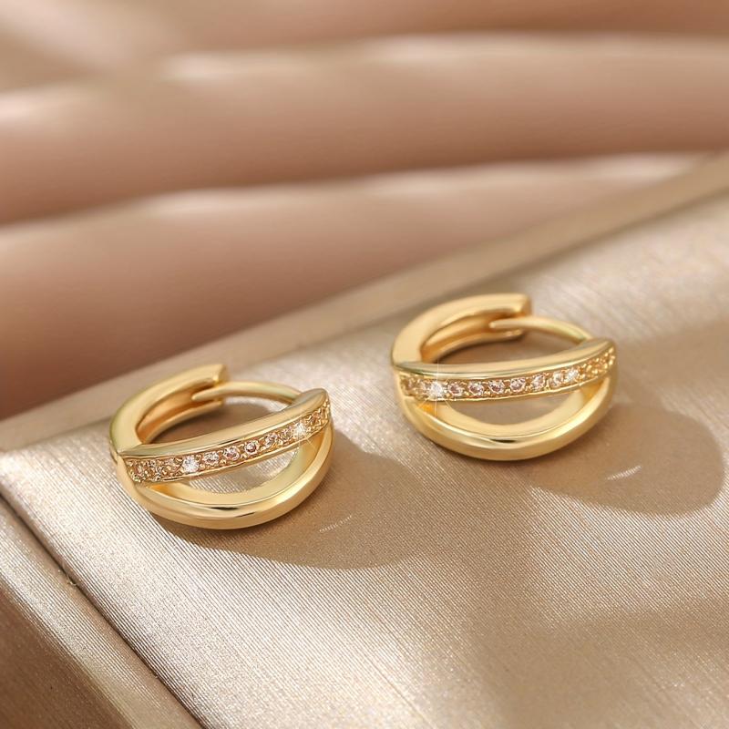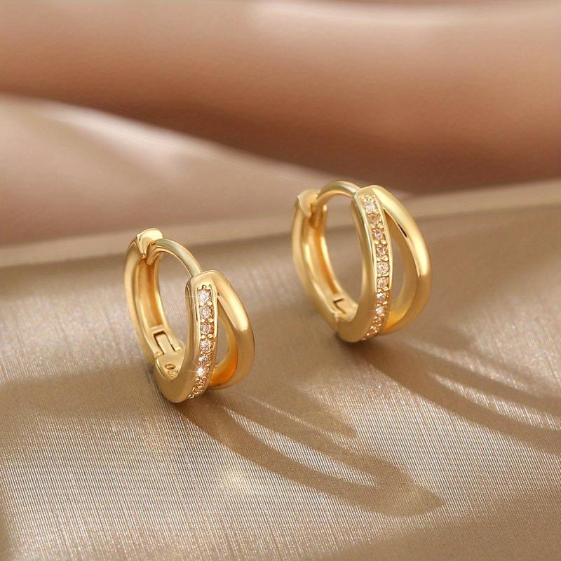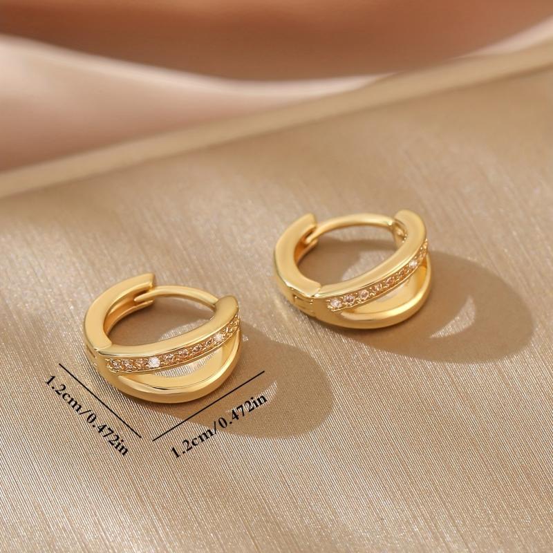 Tiny Hoop Earrings with Zirconia Inlay Copper Jewelry for Women