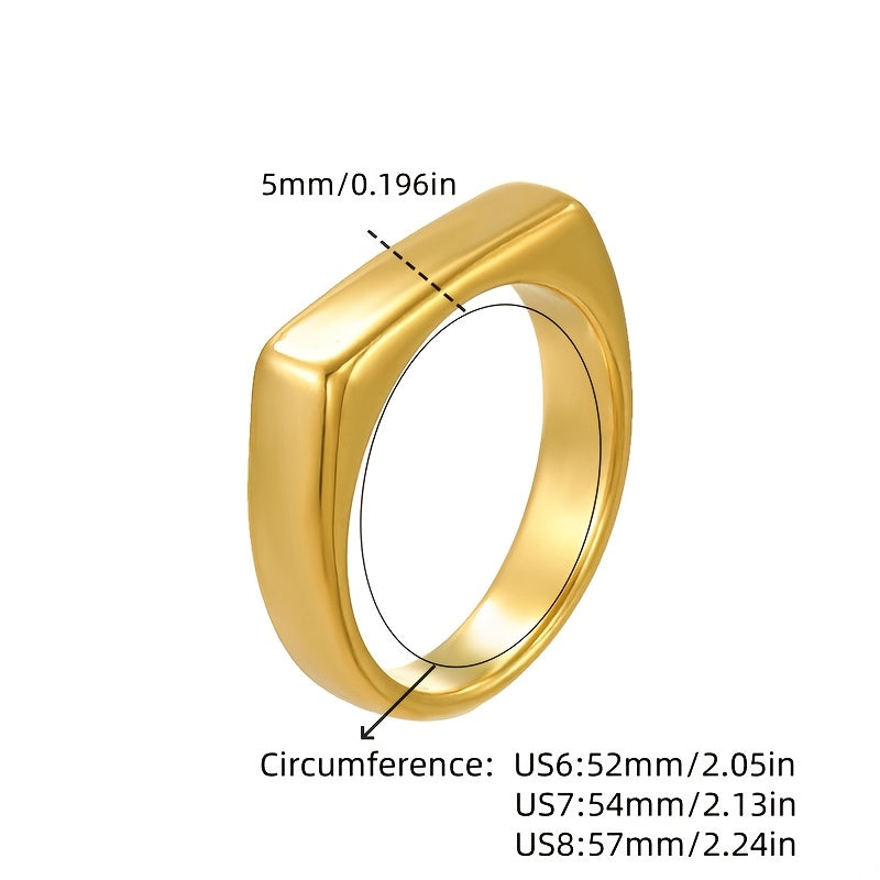 Unisex 18K Gold Plated Stainless Steel Bar Square Ring
