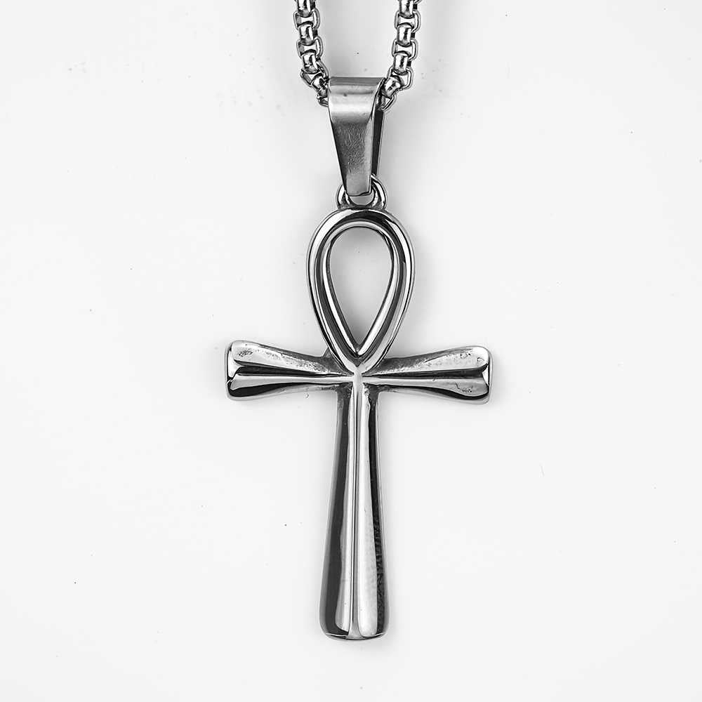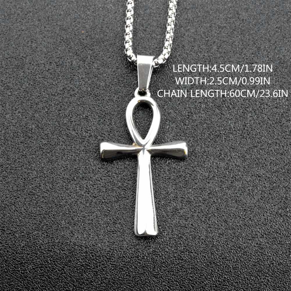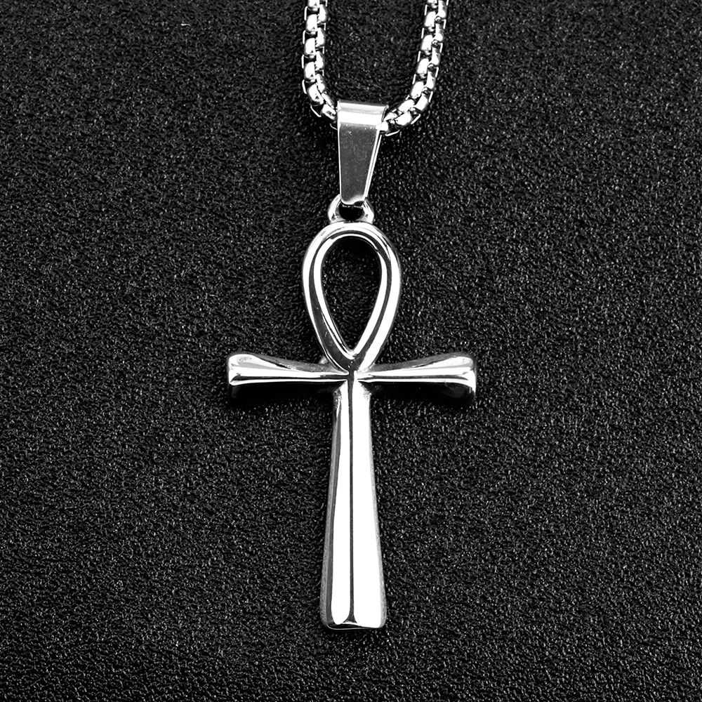 Unisex Silver Plated Ankh Cross Pendant Necklace With Round Box Chain