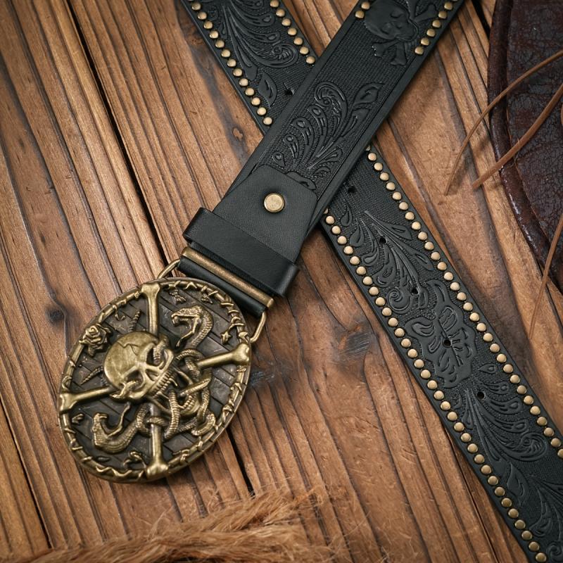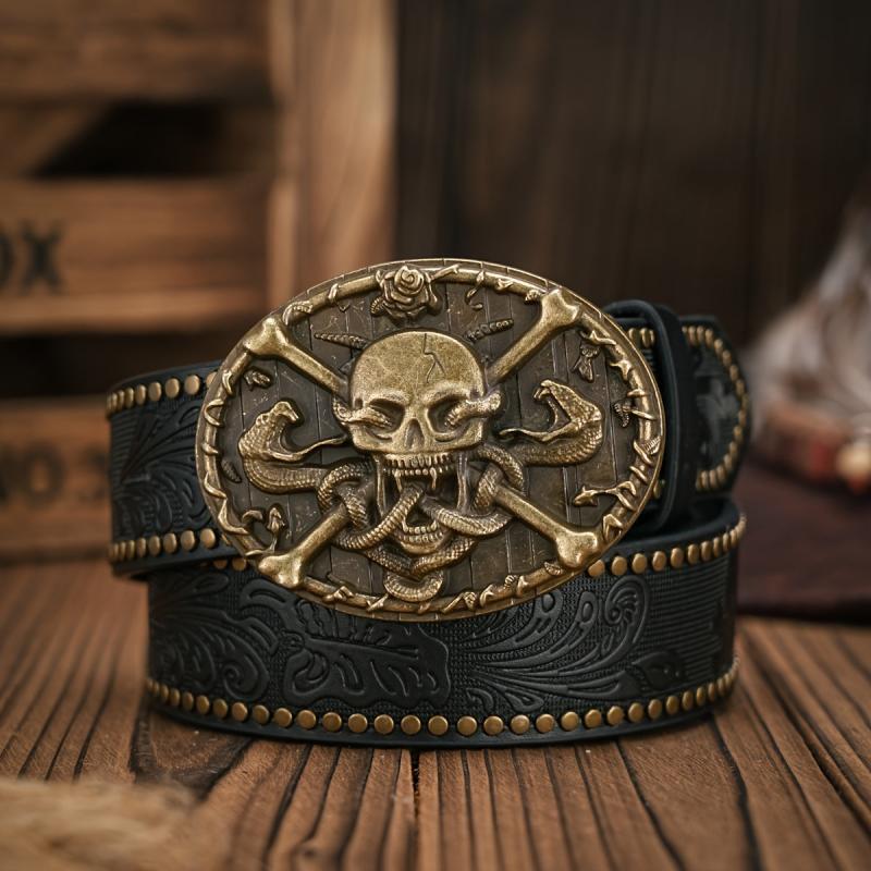 Unisex Western Cowboy Style Skull Embossed Metal Buckle Belt