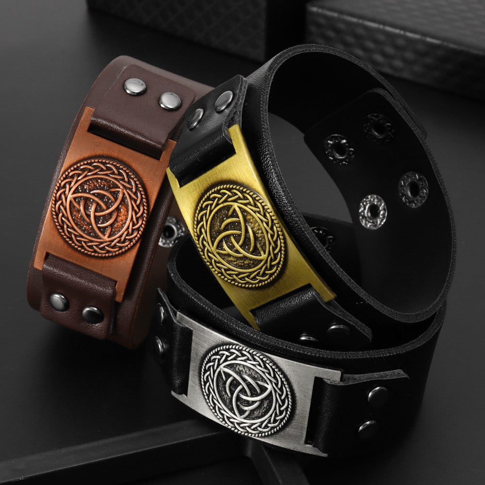 This Viking Retro Celtic Knot bracelet is made of faux leather, perfect for men who love punk style jewelry. It makes a great gift for any occasion.