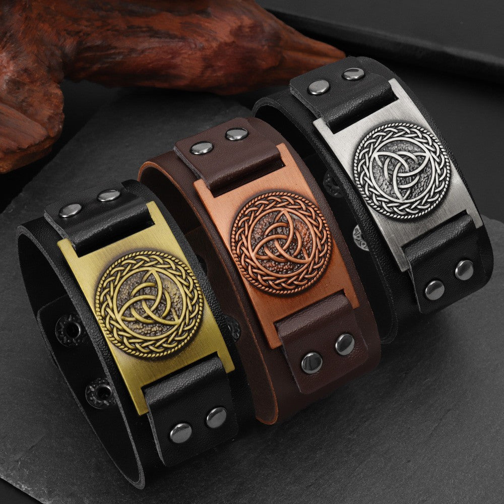 Viking Retro Celtic Knot Faux Leather Men Bracelet Punk Style Gift