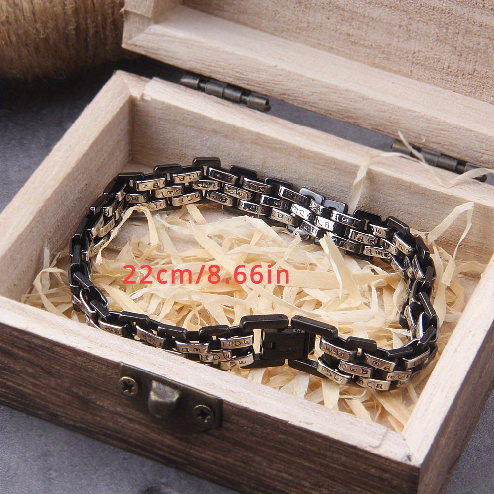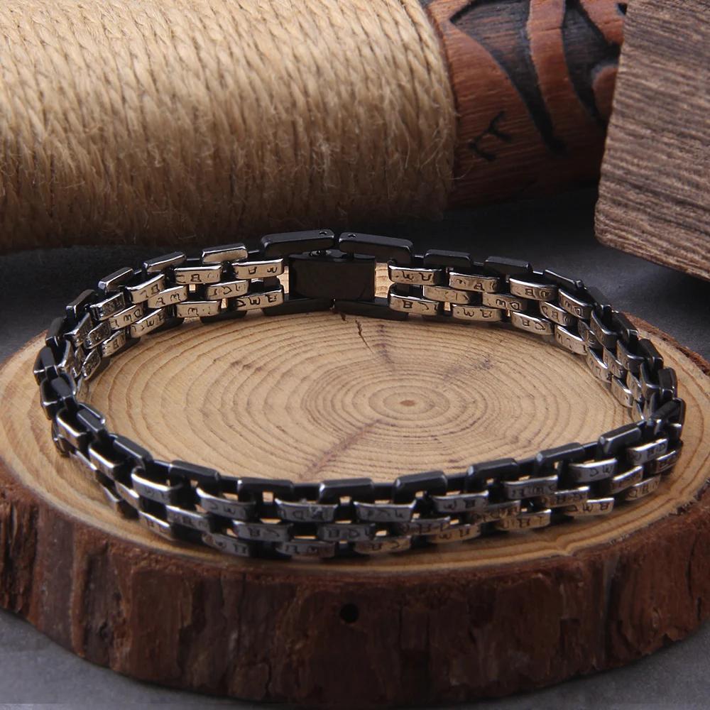 Durable stainless steel bracelet featuring enamel and metallic links, adjustable to fit both men and women. Perfect wrist jewelry for casual or formal occasions.