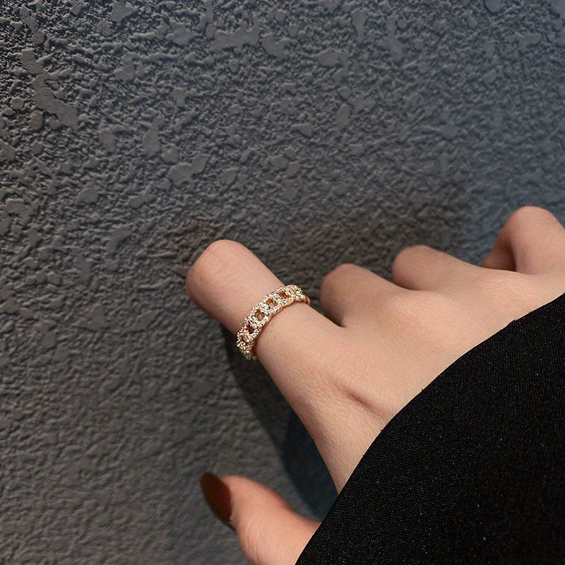 This vintage adjustable open ring features a synthetic chain link design with a February birthstone, plated in golden KC. It is a perfect gift for daily wear and special occasions.