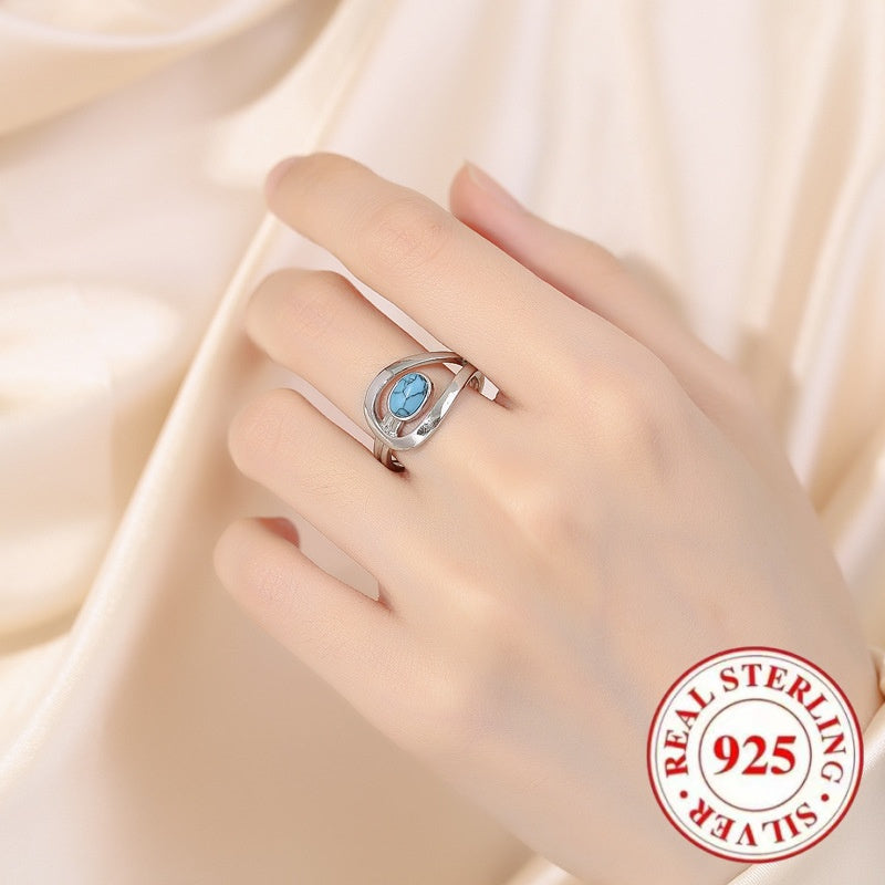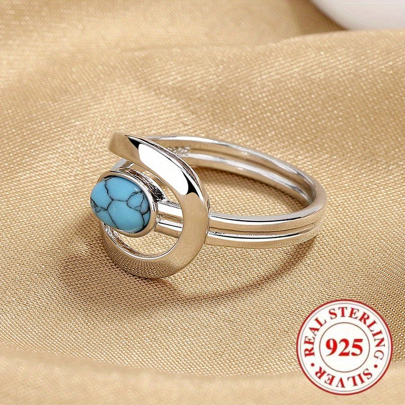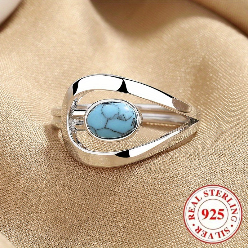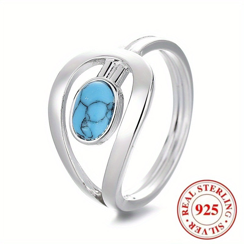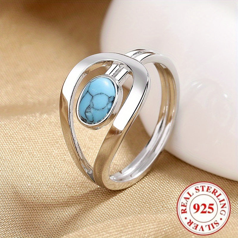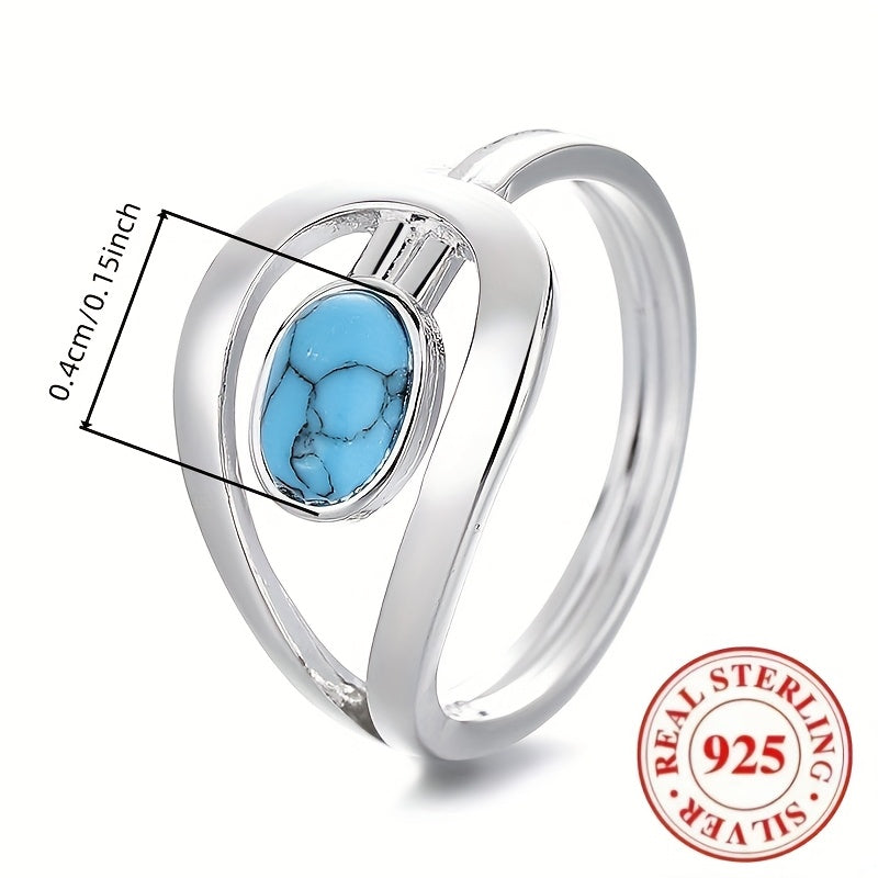 This exquisite women's engagement ring features a vintage Bohemian design crafted from 925 sterling silver with a turquoise stone. Silver plated for added elegance, it is perfect for all season wear, weighing only 2.6g.
