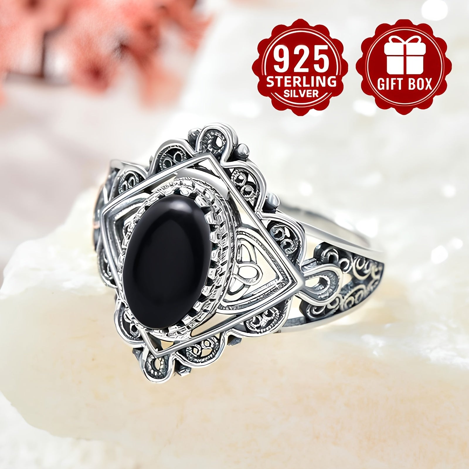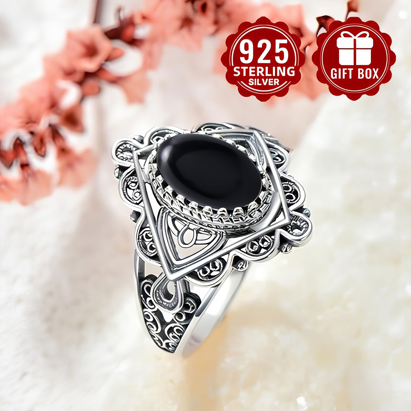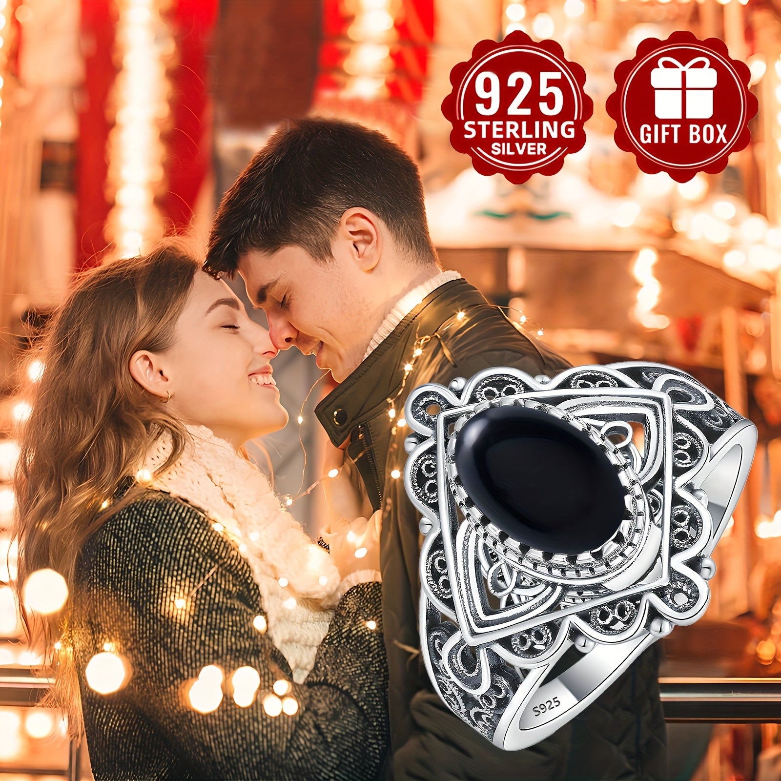 Elevate your everyday look with this stunning vintage bohemian style ring featuring a hollow carved design, agate stone, and S925 silver construction. Perfect as a gift or for your own accessory collection.