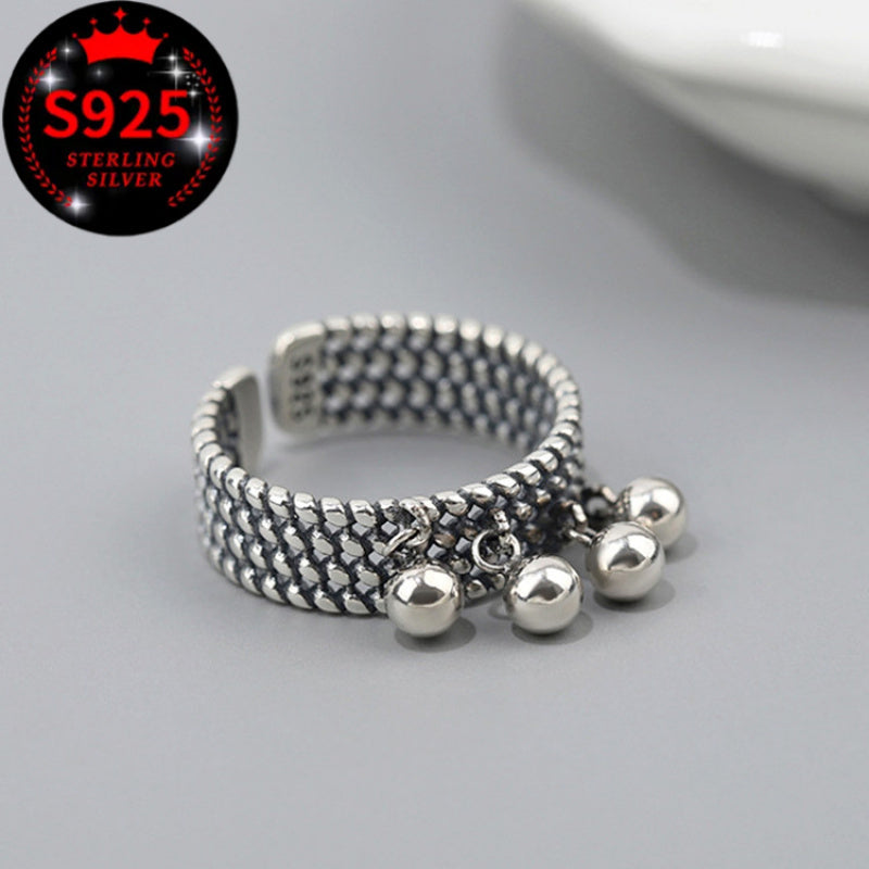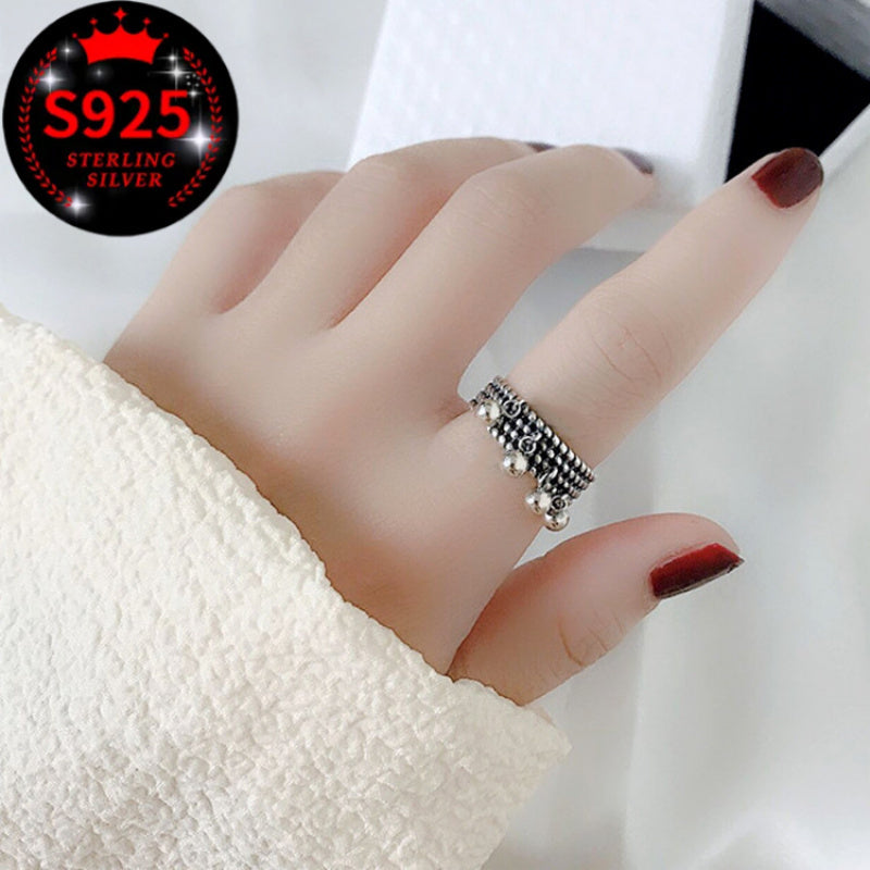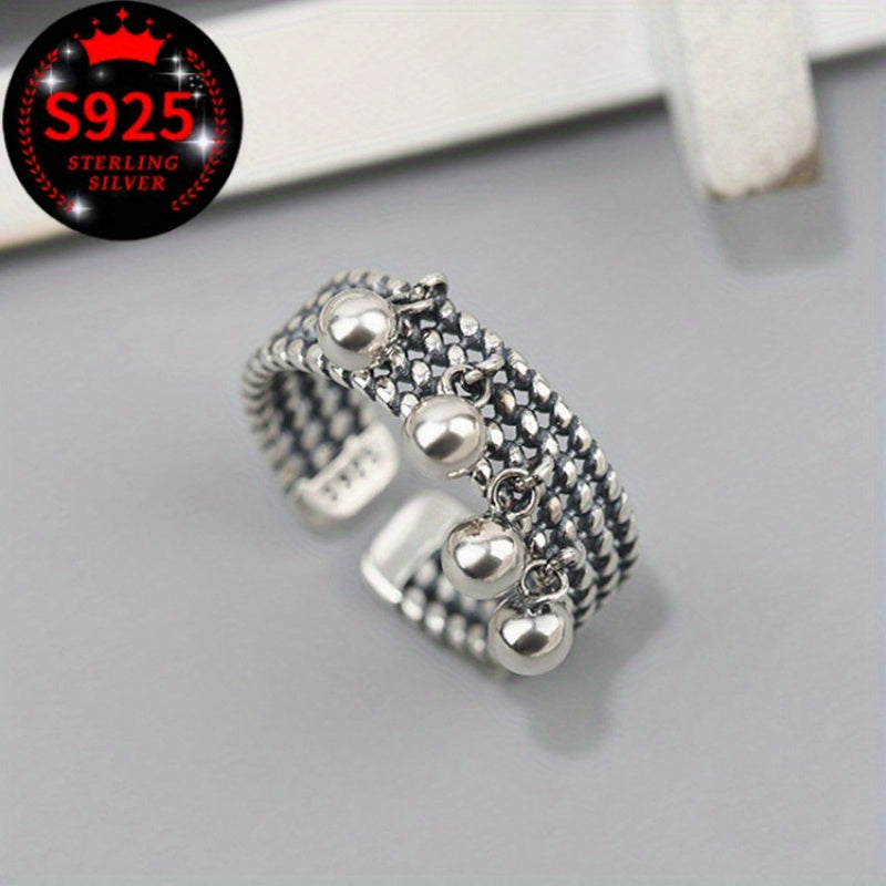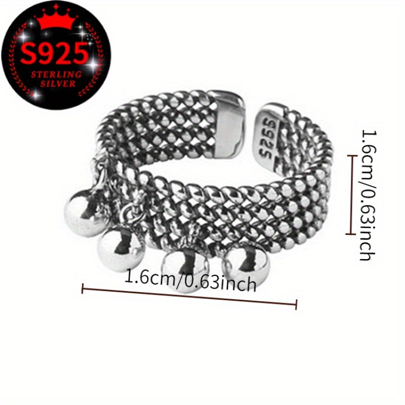 This 925 sterling silver ring features an open adjustable design with tassel beads and a layer braided glossy finish. Perfect for daily wear, beach vacations, or as a thoughtful Mother's Day gift.