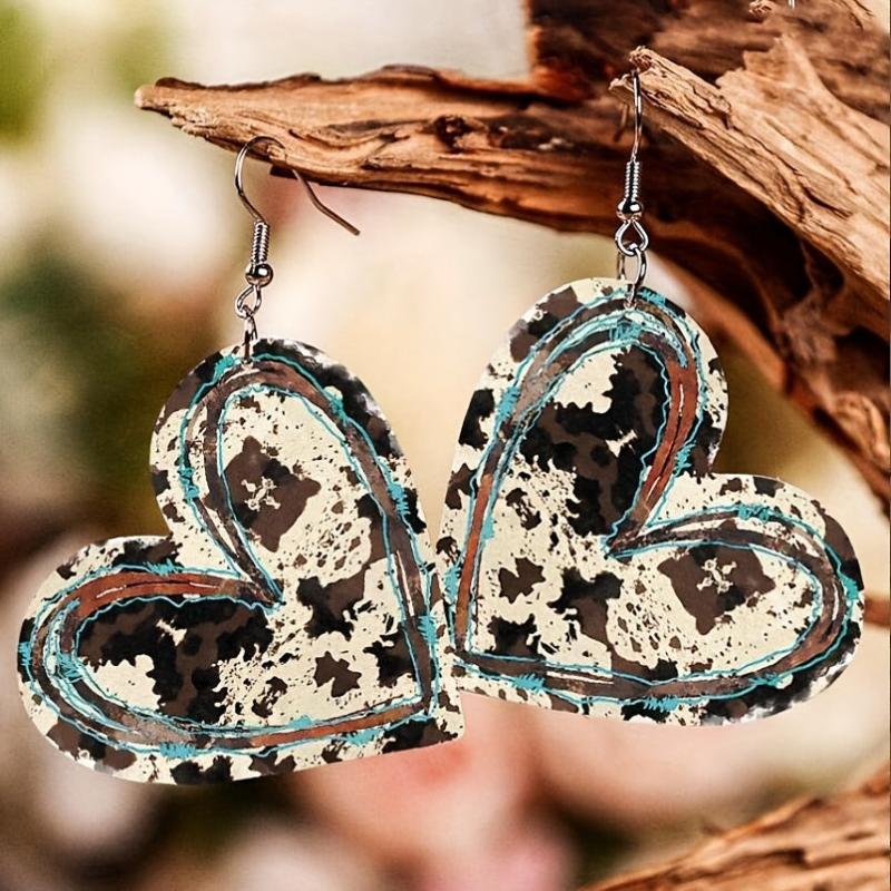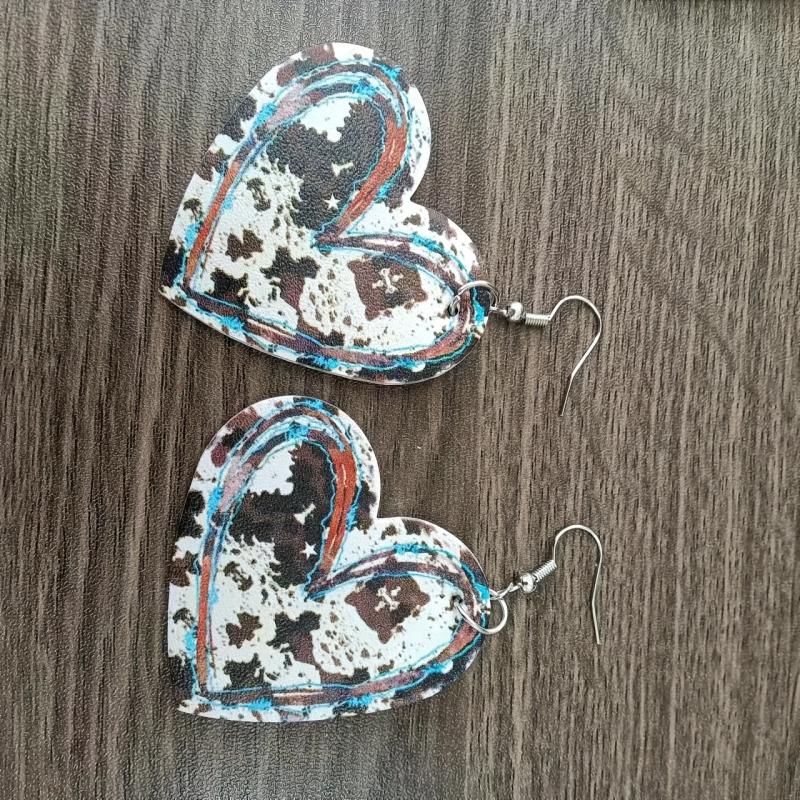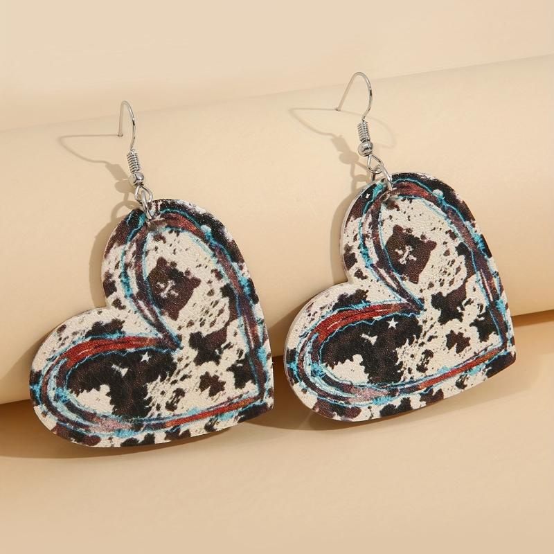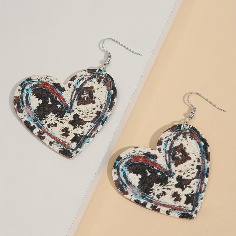 Add a touch of retro western style to your look with these charming heart-shaped cow pattern dangle earrings. Crafted from PU leather, these holiday earrings make a unique and eye-catching accessory.