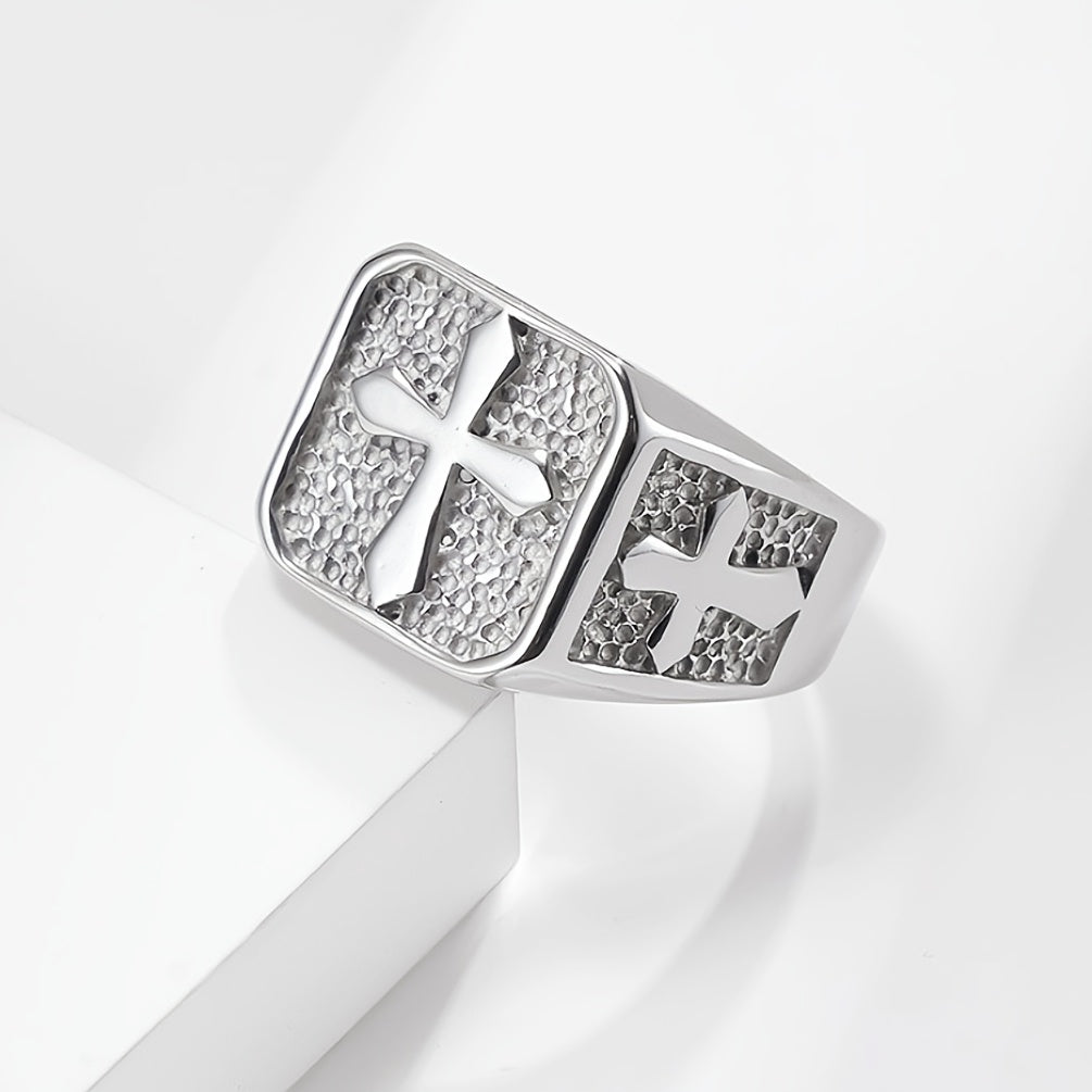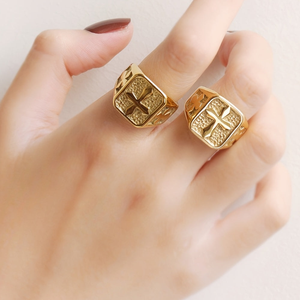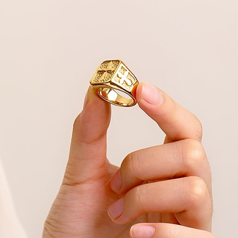 This classic cross ring features 18K golden plating and is made of high-quality 316 stainless steel. Suitable for daily wear or special occasions.