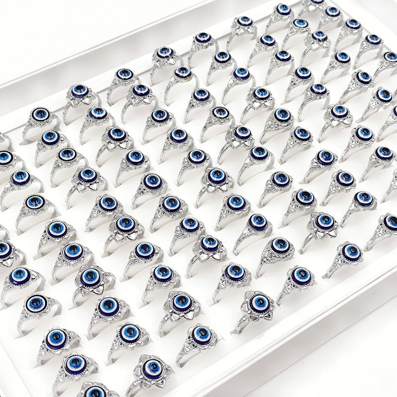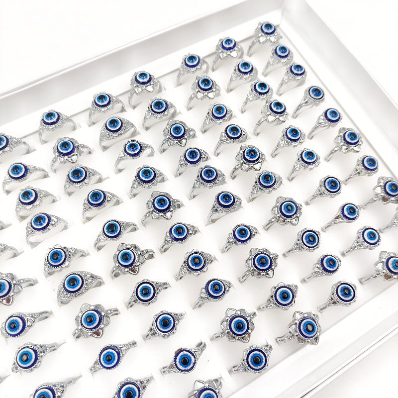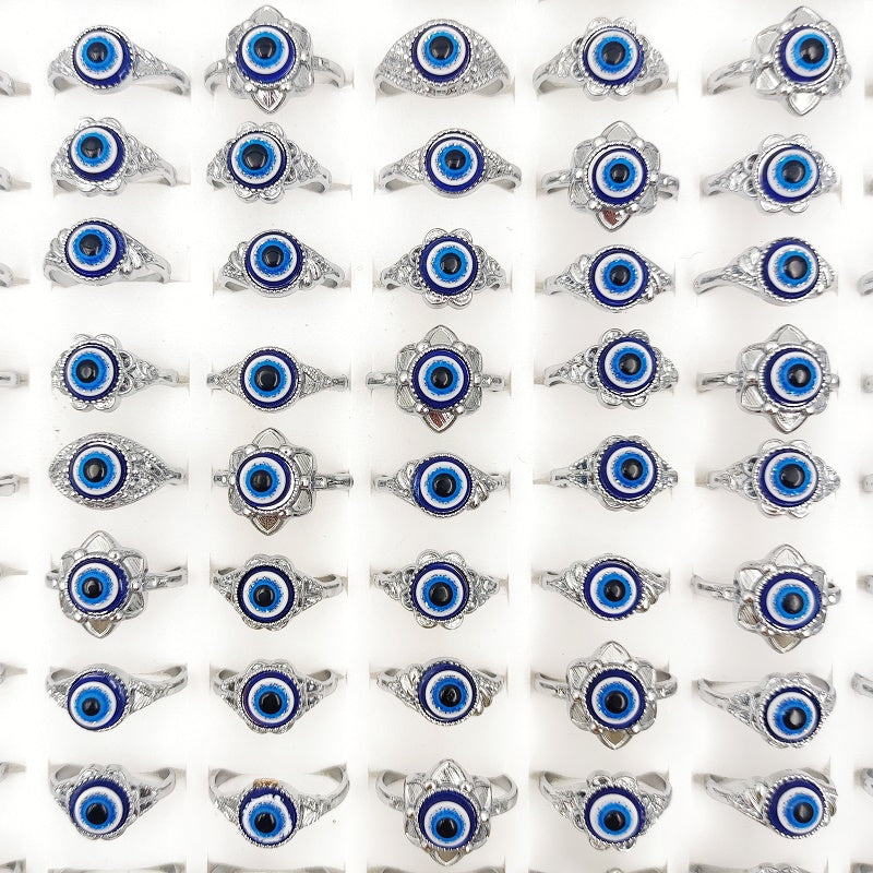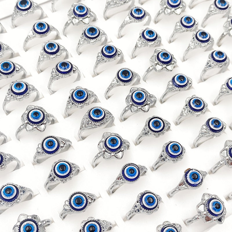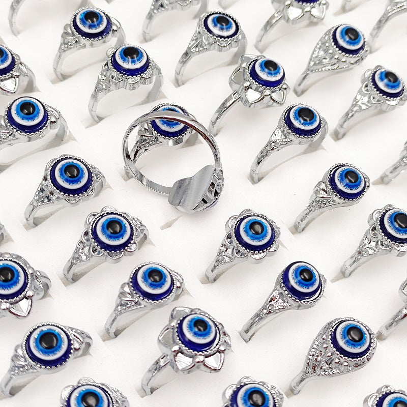 Add a touch of mystique to your look with these vintage devil's eye statement rings. Crafted from silver-plated alloy, these rings are perfect for all seasons and occasions. Features a lucky sea eyes charm for extra flair.