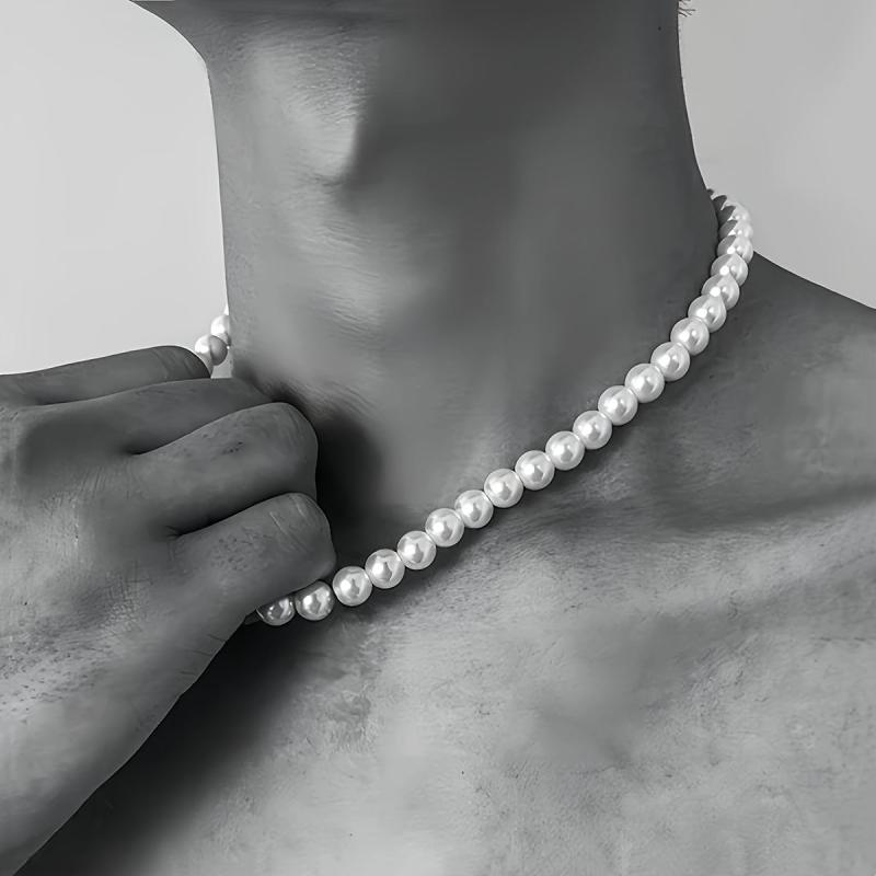 Add a touch of elegance with this vintage faux pearl beaded necklace suitable for both men and women.