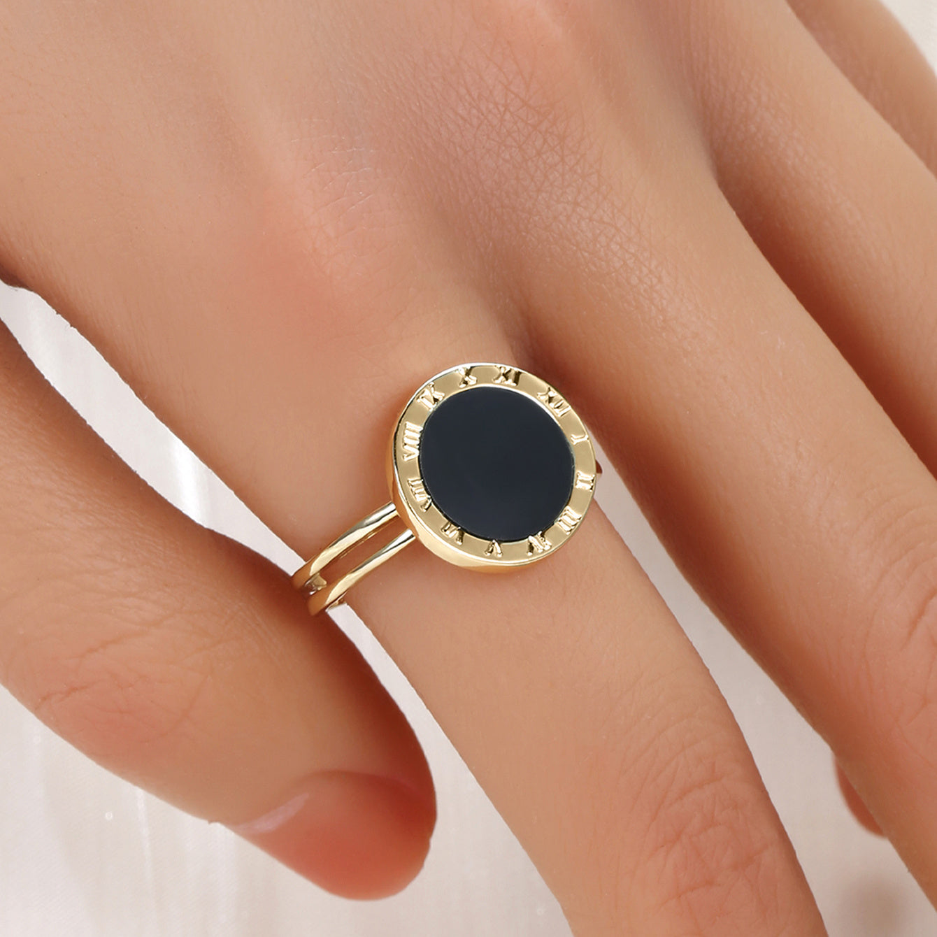 Add a touch of retro charm to your daily outfits with this vintage geometric ring. The Roman numerals design and 18K golden plating make it a fashionable accessory for both men and women.