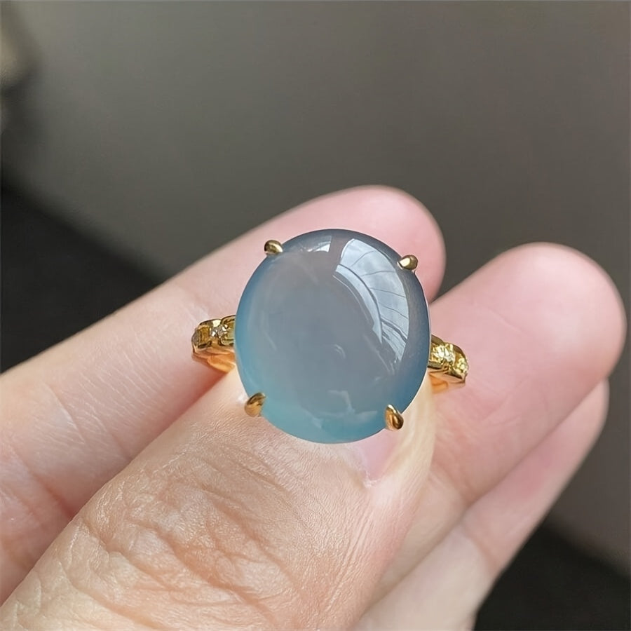 Add a touch of vintage charm to your outfit with this durable resin ring. Perfect for holiday or everyday wear, this grey oval ring features a golden tone, making it a versatile accessory for any occasion.