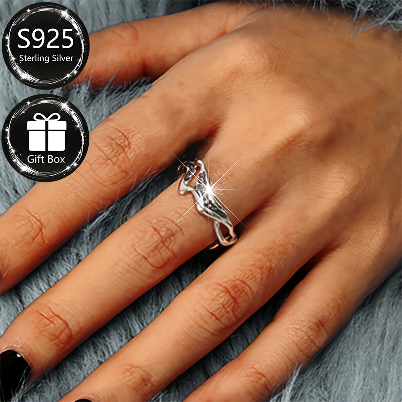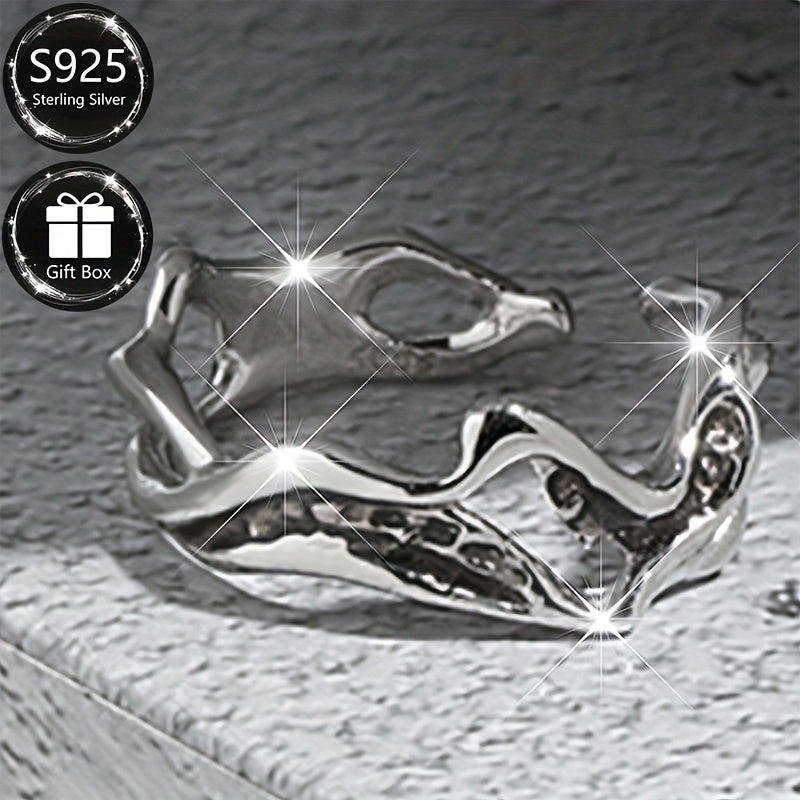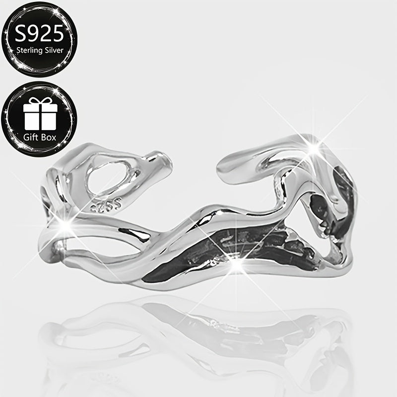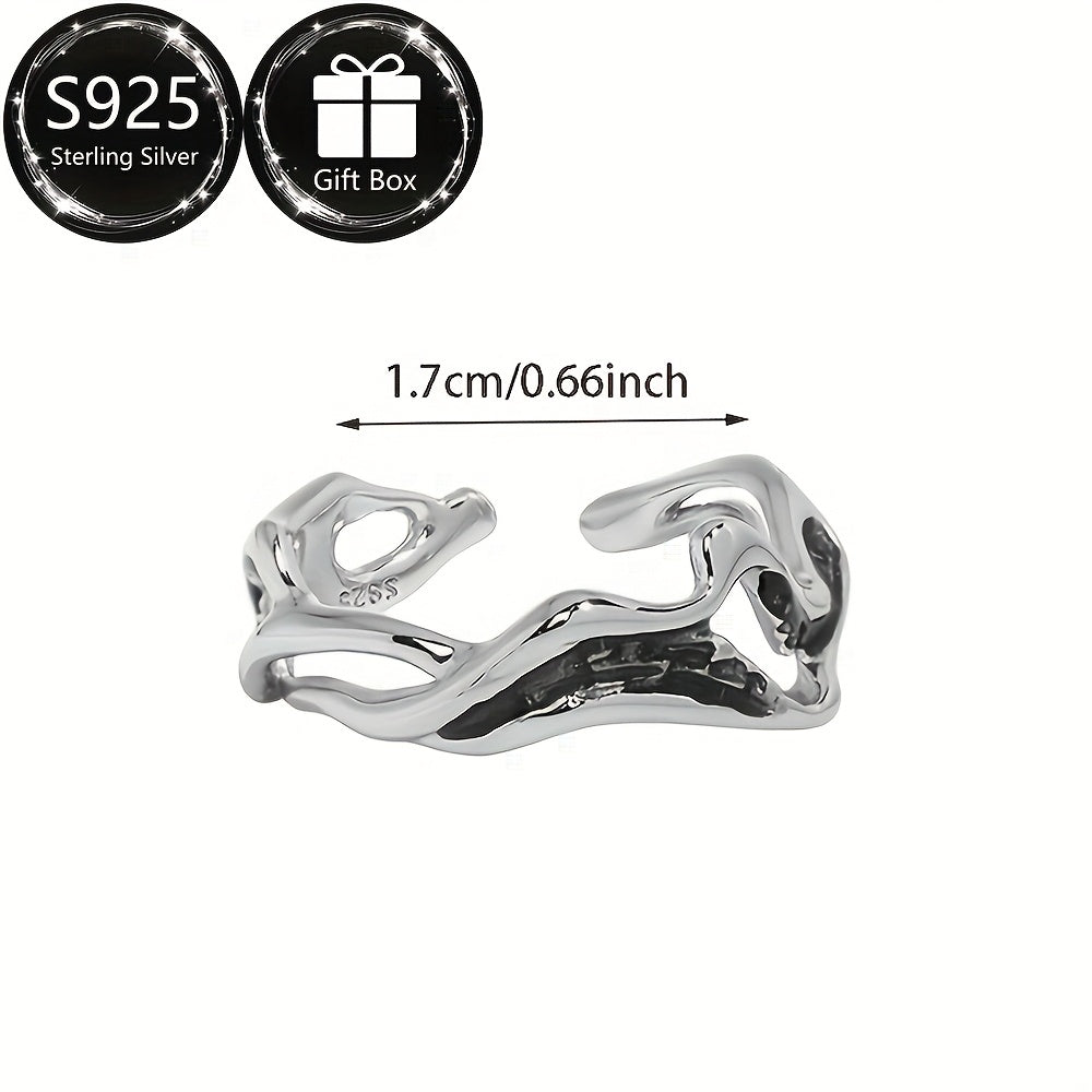 This open ring features a unique resin inlaid irregular faceted design. Made of high-quality 925 sterling silver, it is adjustable and suitable for daily wear and parties.
