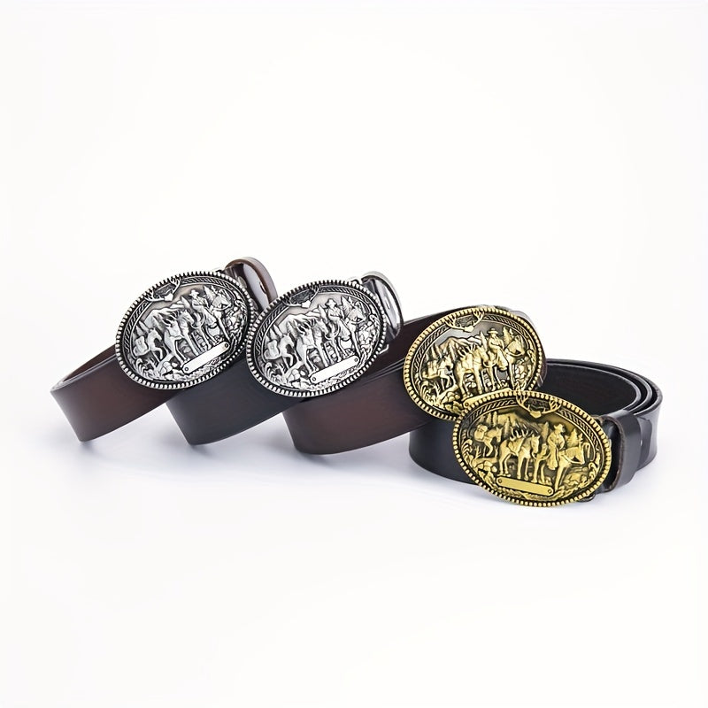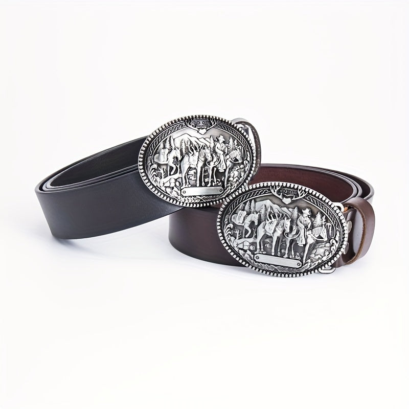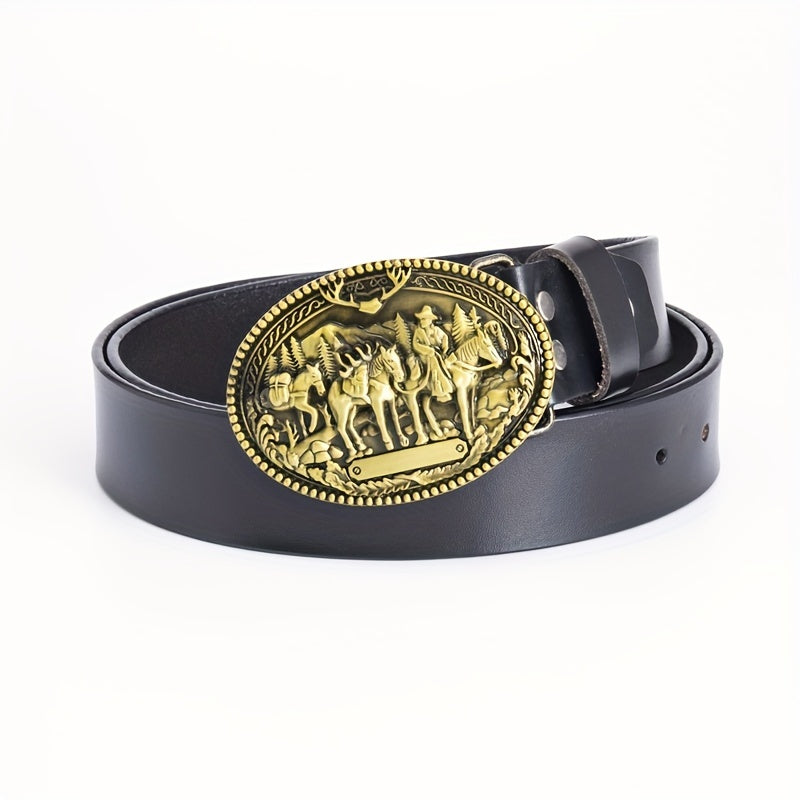 Vintage Hip Hop Cowhide Belt Men's Western Street Style with Alloy Buckle
