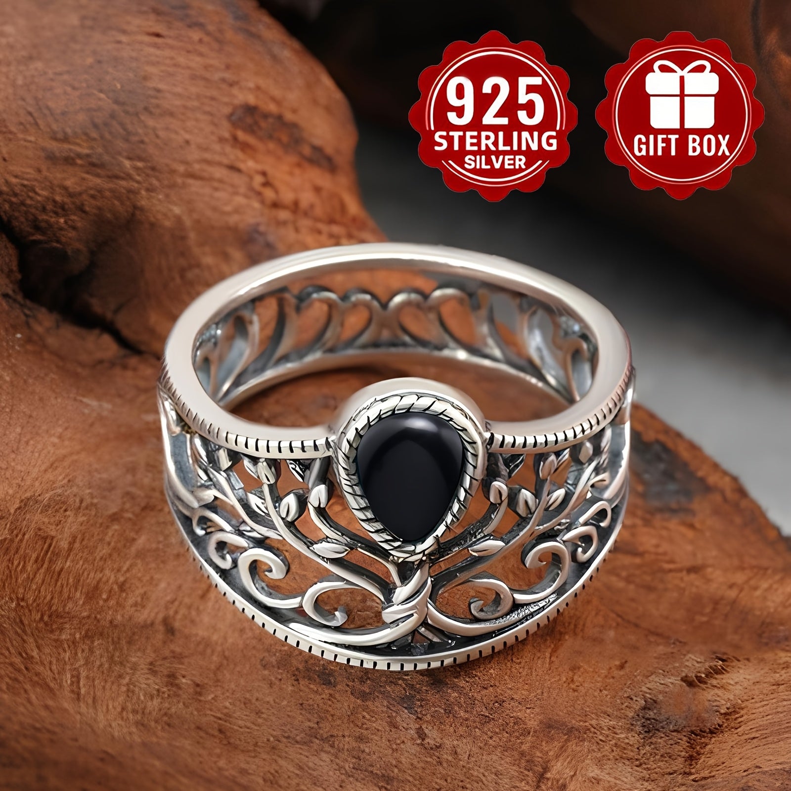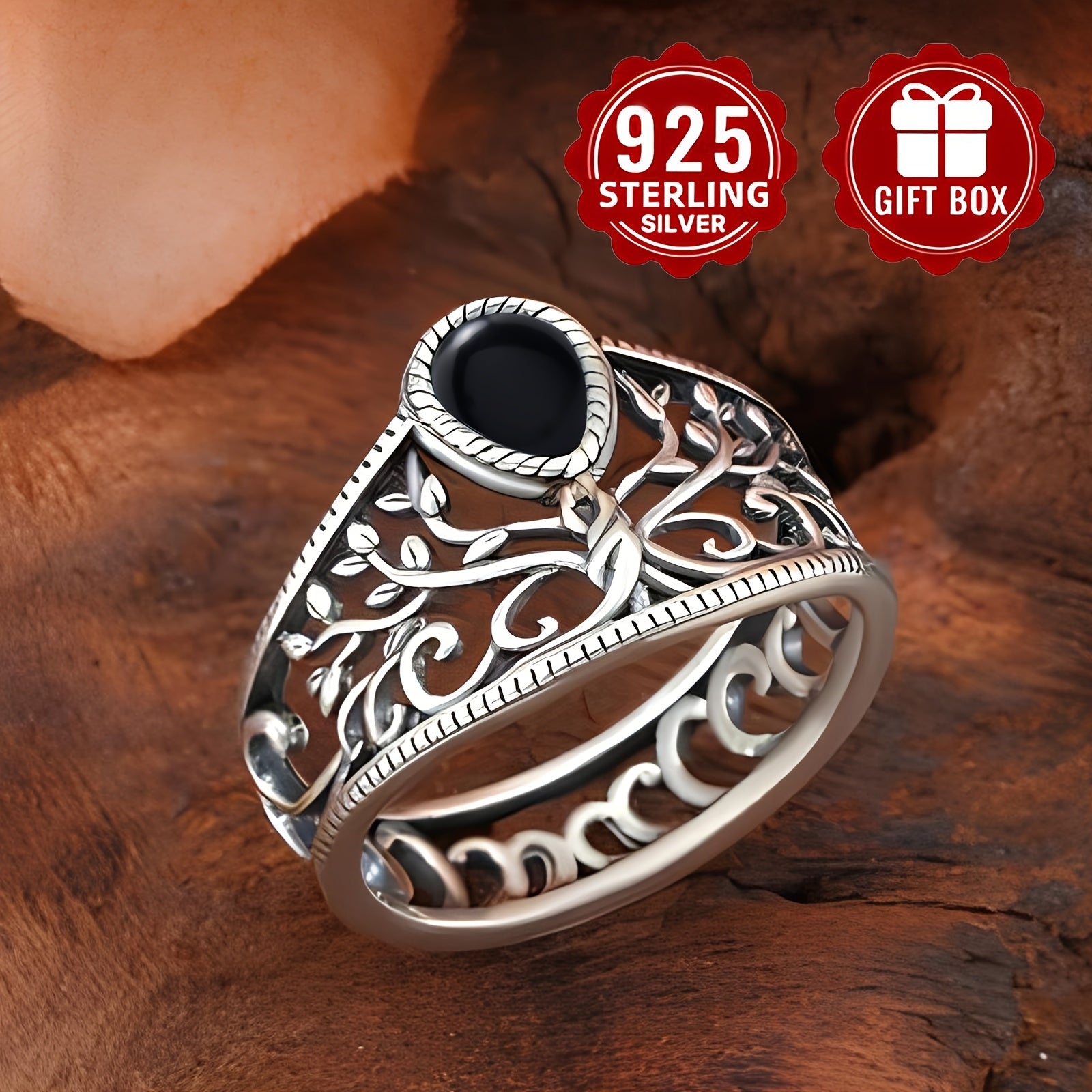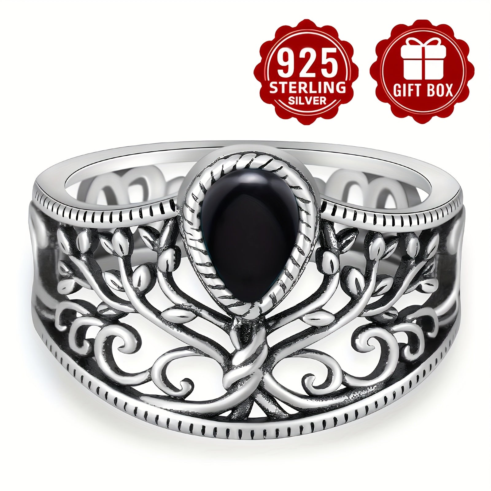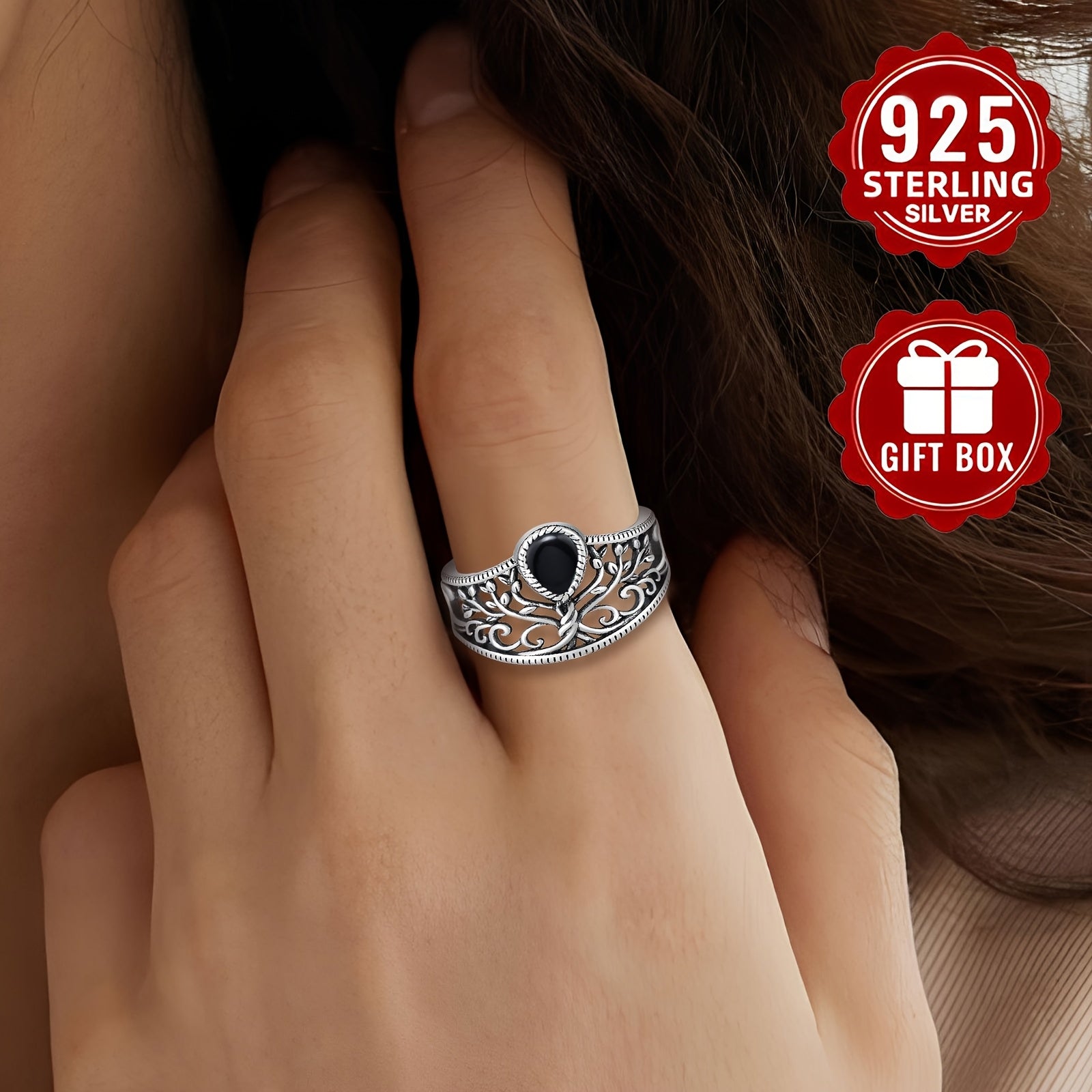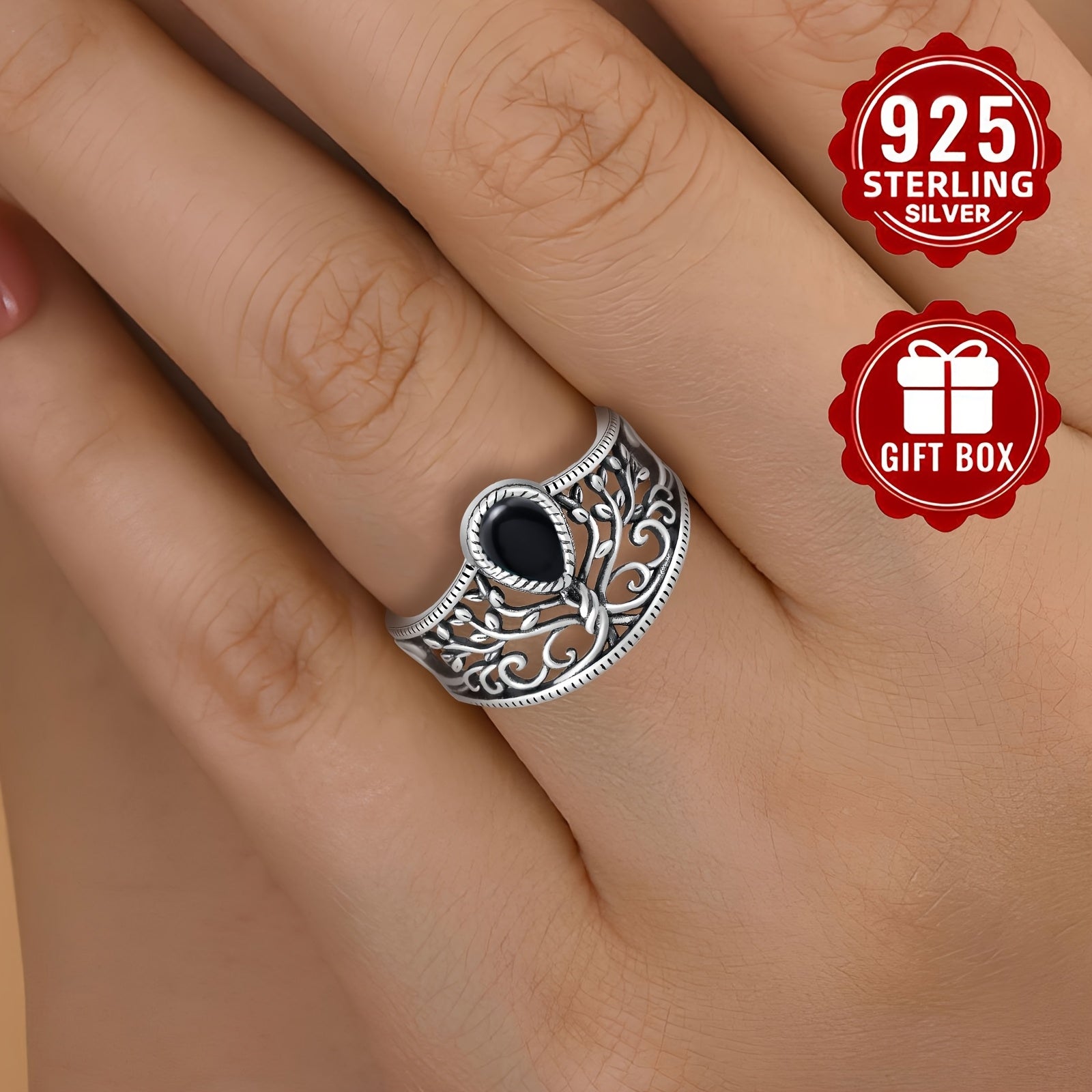 This women's vintage ring features a classic design with a hollow tree of life motif and an agate stone. Made from S925 silver, this jewelry piece is perfect for adding a touch of elegance to any outfit.