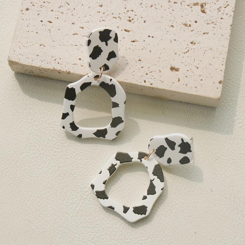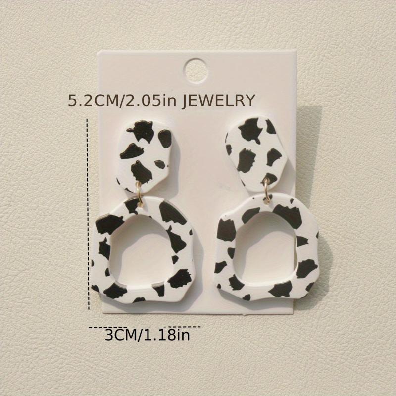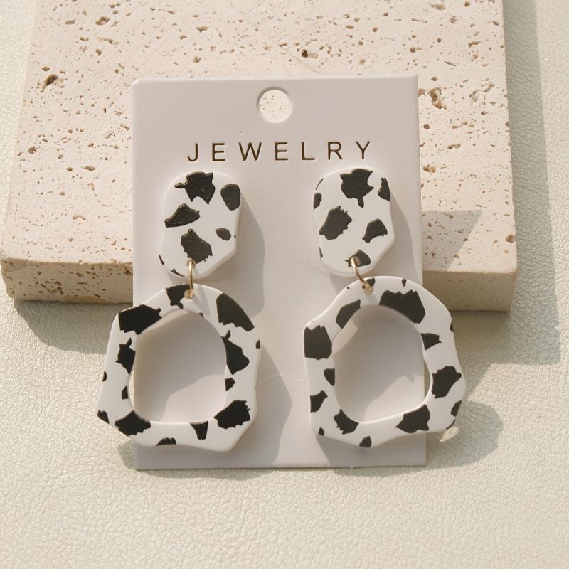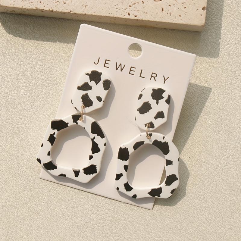 Add a touch of vintage charm with these colorful acrylic hoop earrings. They feature a stylish cow print design and are perfect for everyday wear or special occasions.