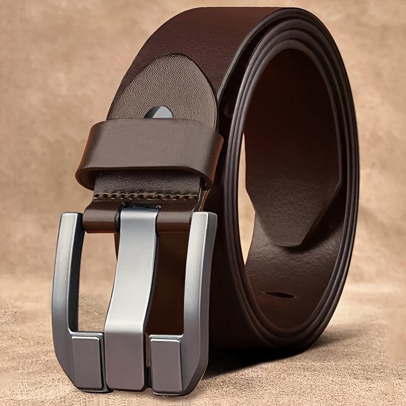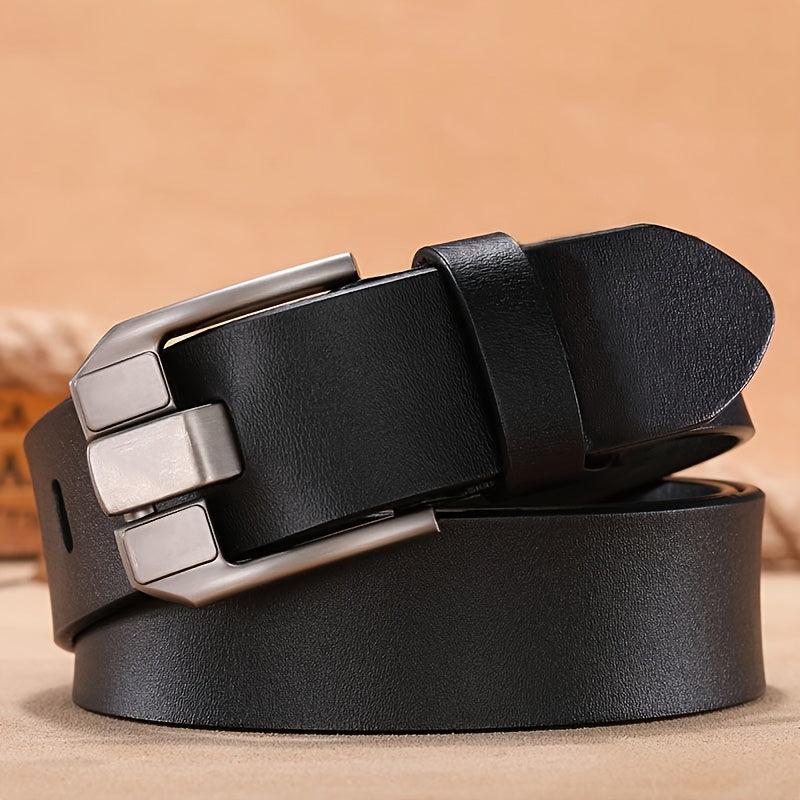 Stay stylish with this vintage leather belt featuring a thick alloy buckle. Ideal for both business and casual wear, this belt is adjustable for a perfect fit.