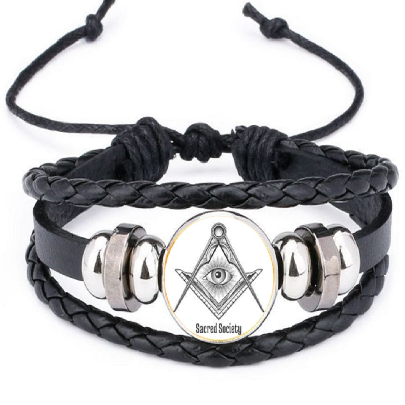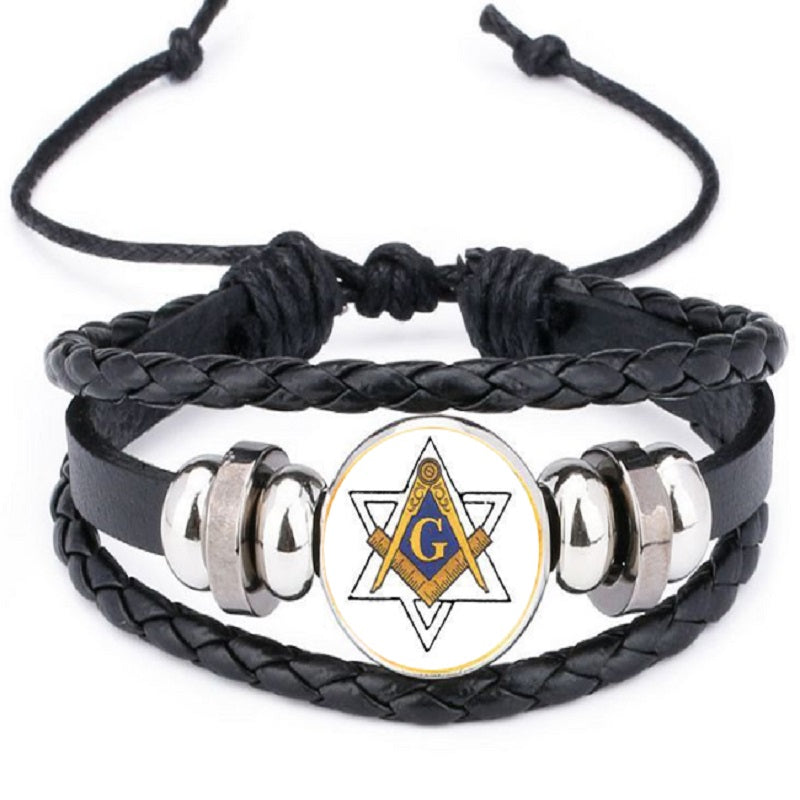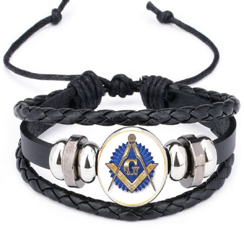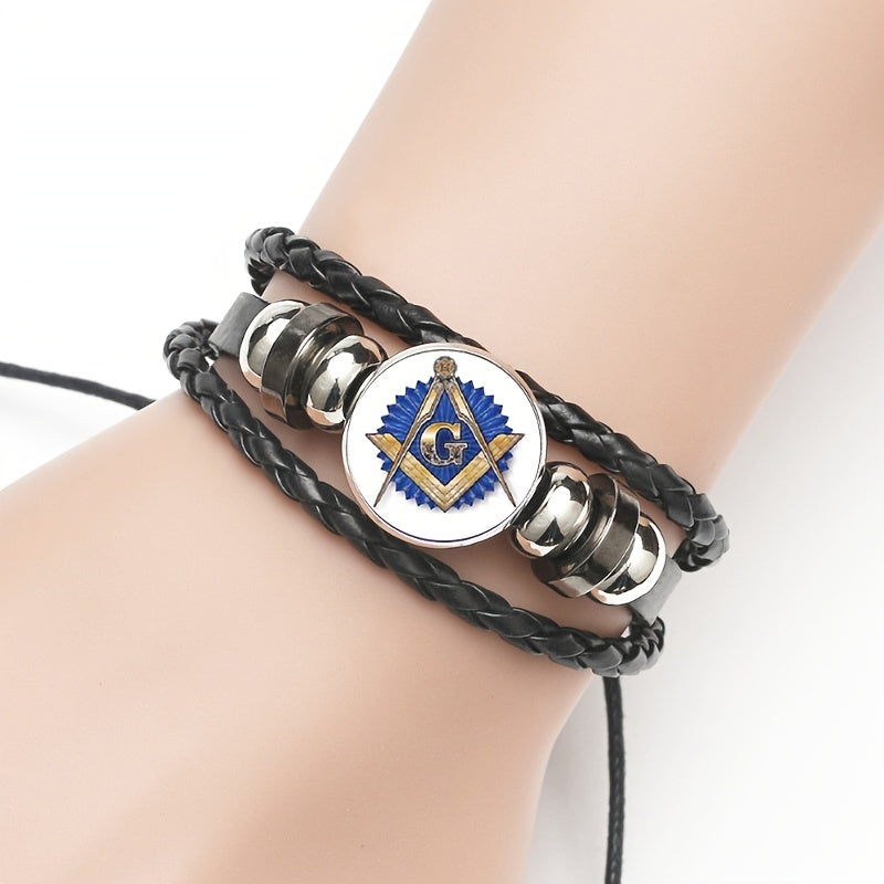 Vintage Masonic Glass Clasp Noosa PU Leather Bracelet