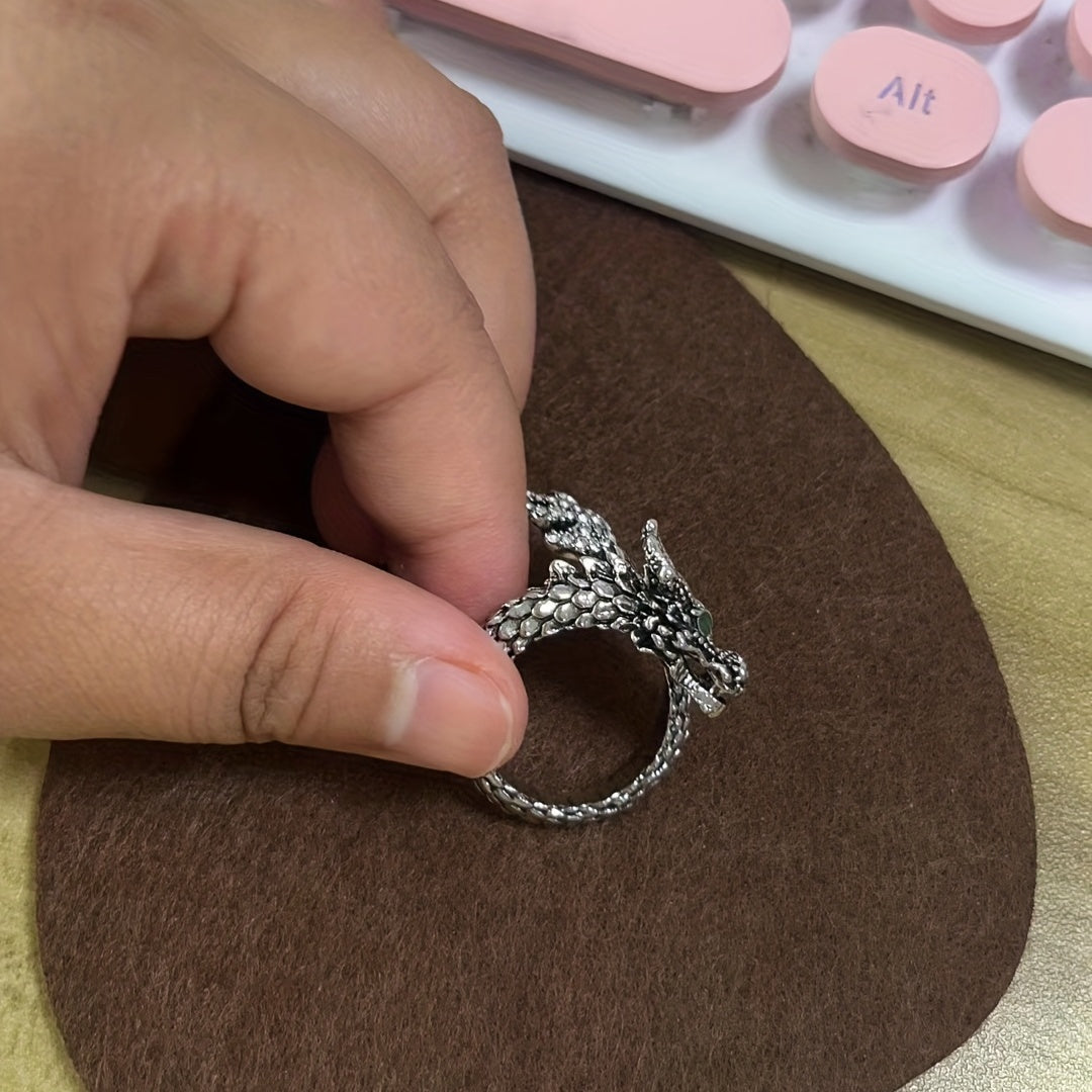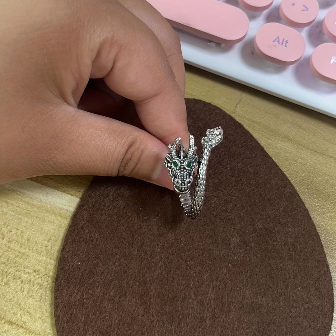Vintage Men's Rhinestone Dragon Shape Ring Adjustable Ring
