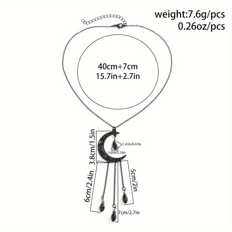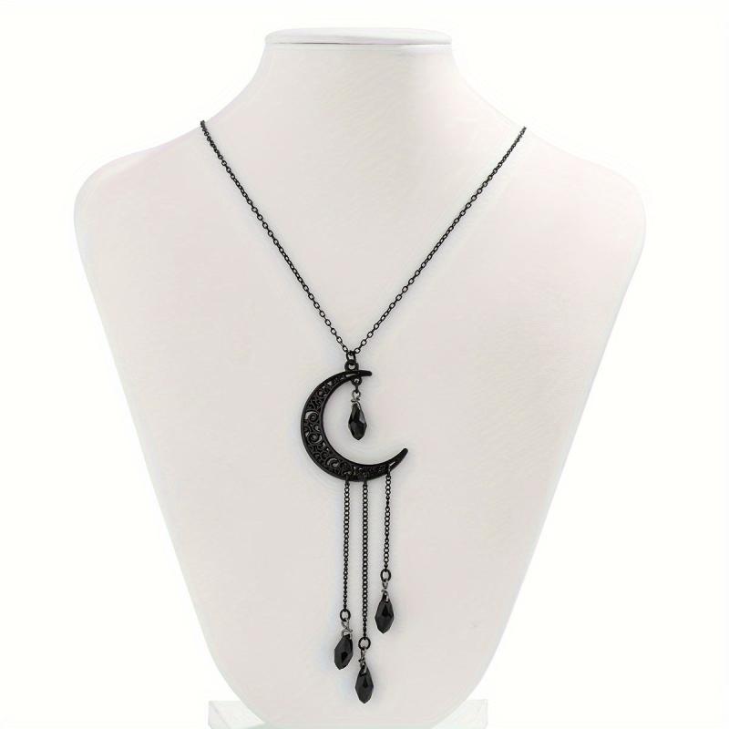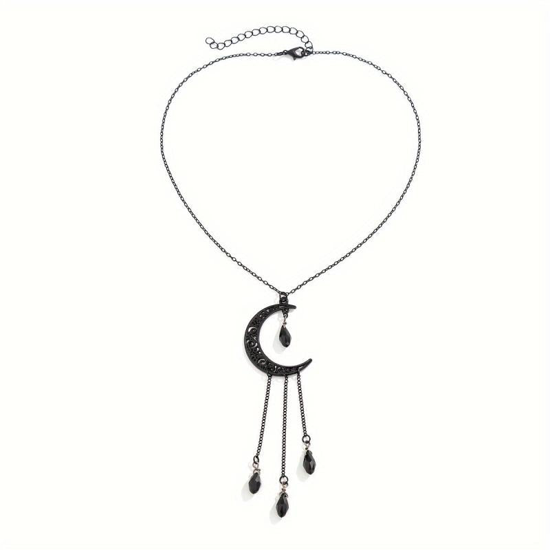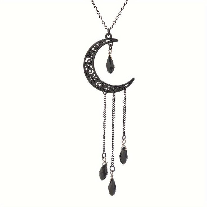 Vintage Moon Pendant Necklace Crystal Tassel Chain