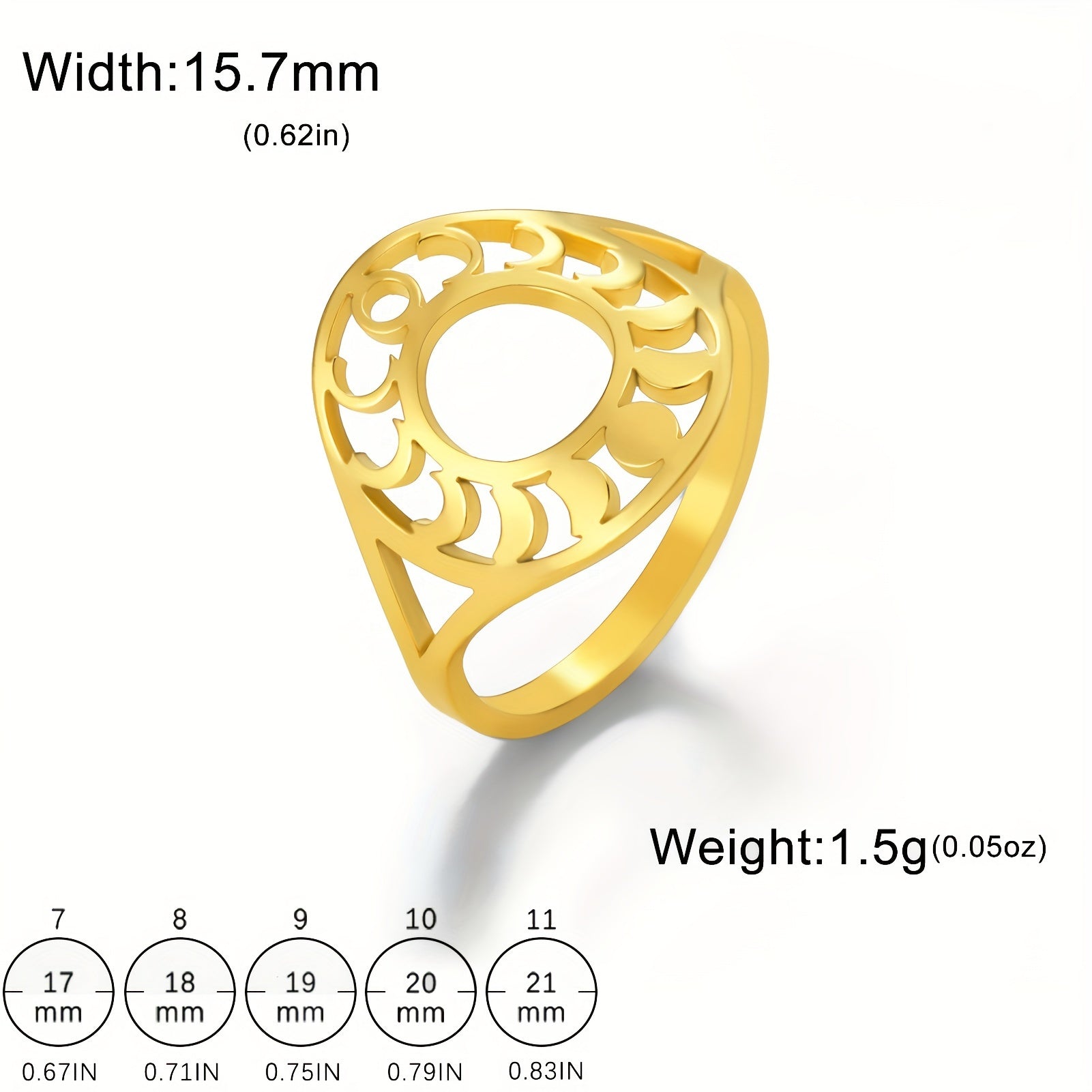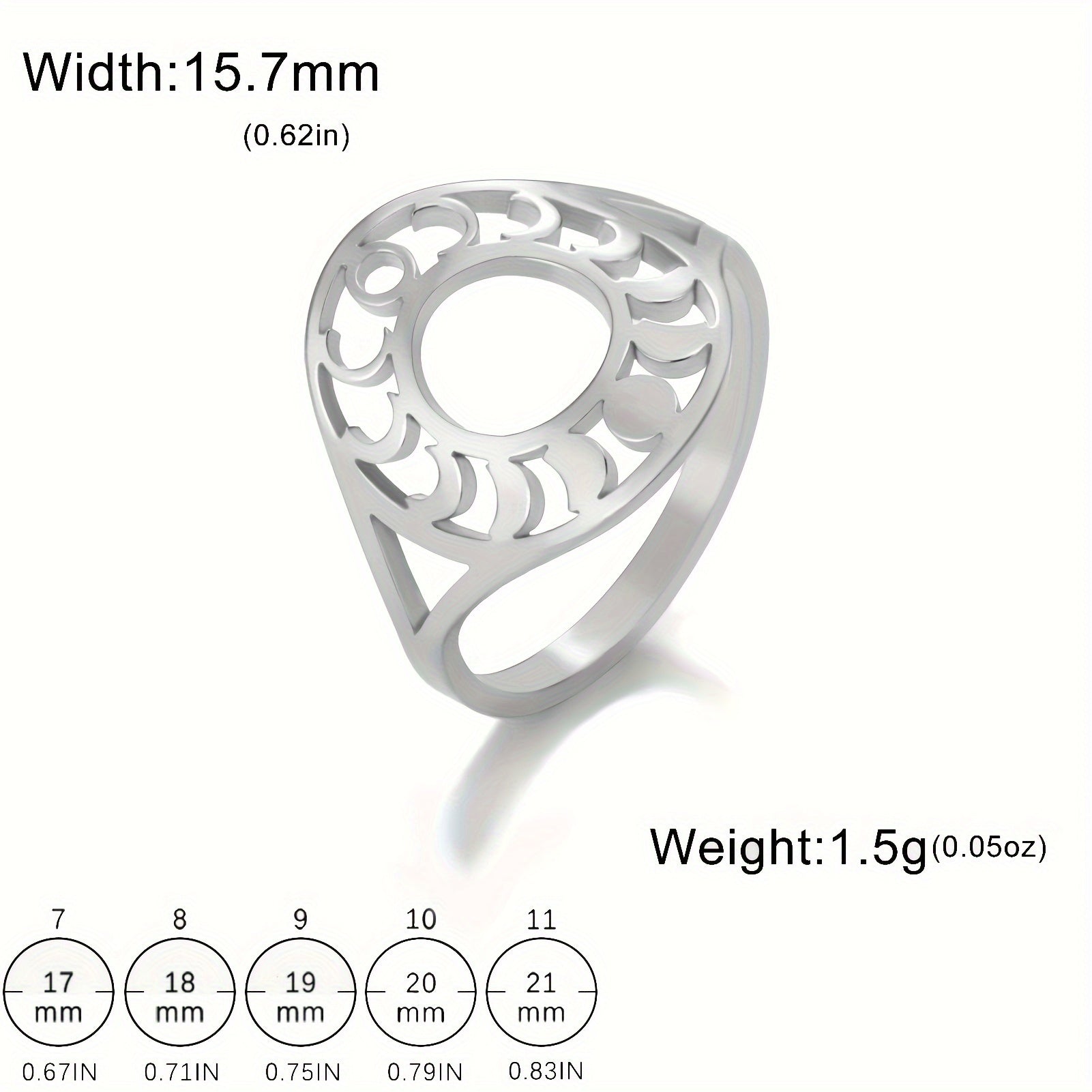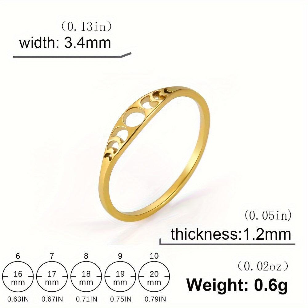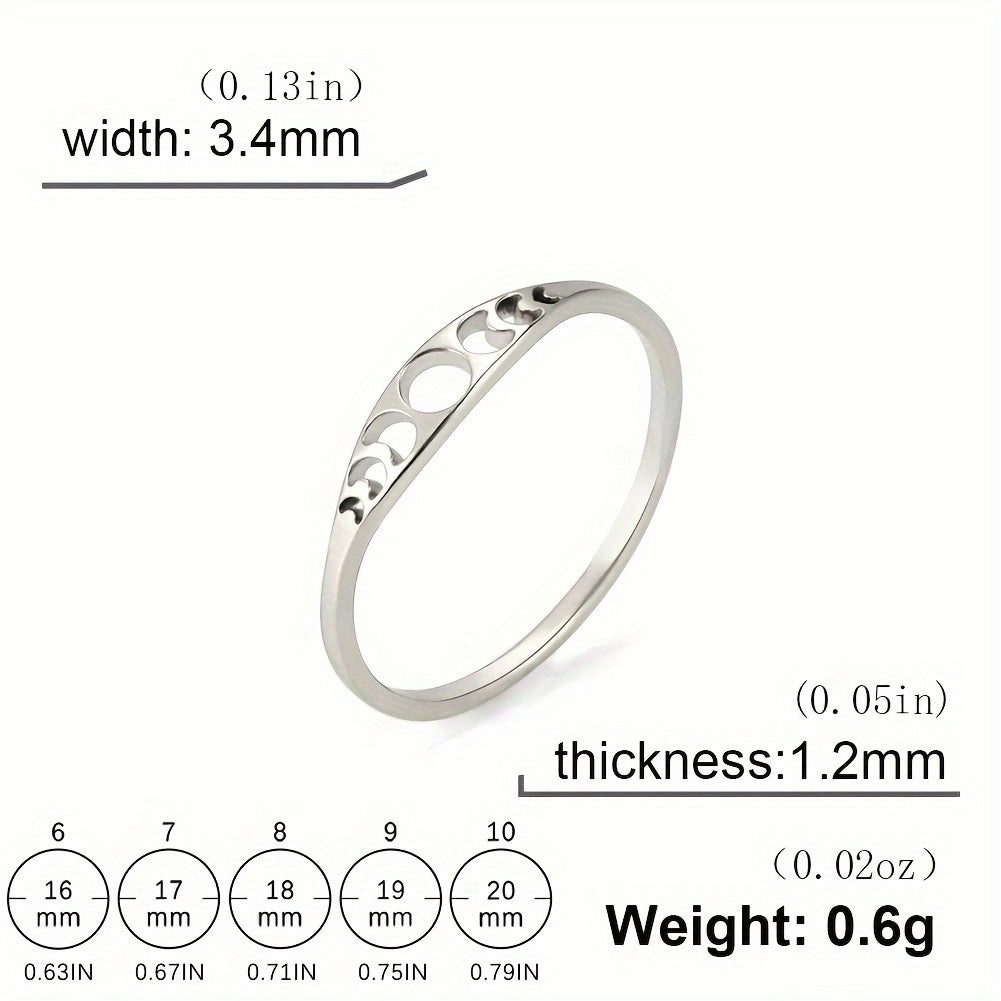 Vintage Moon Phase Ring Men Stainless Steel Wedding Band Unisex Lucky Charm Gift