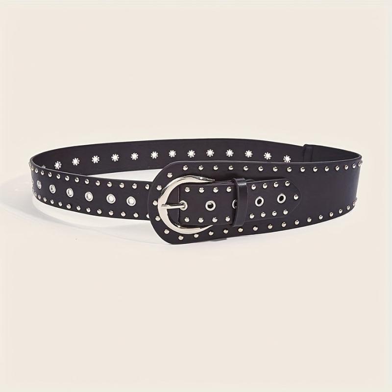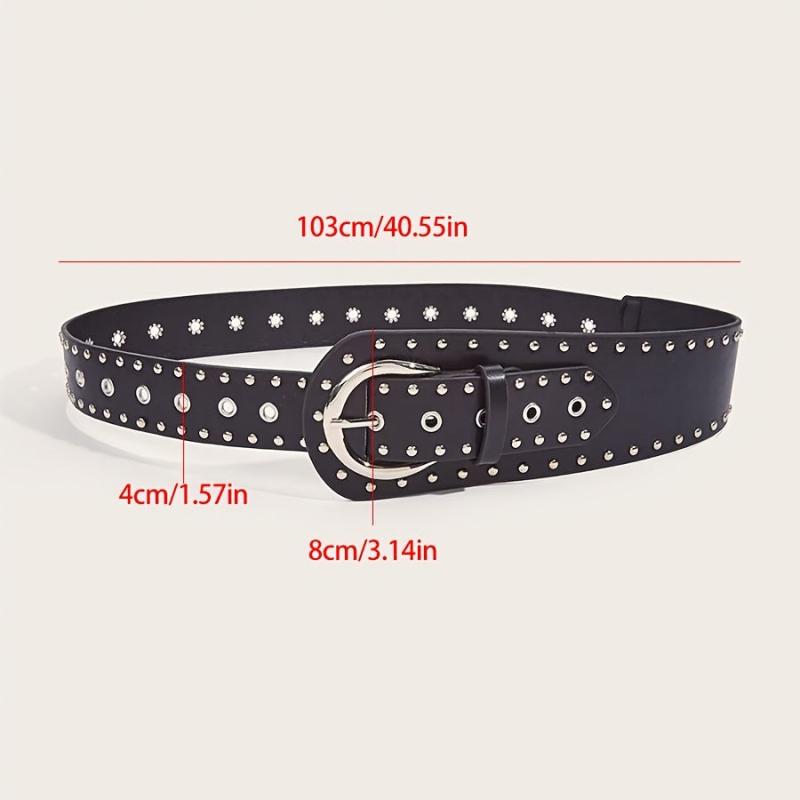 Add a touch of edge to your outfit with this vintage-inspired waist cincher belt. Made of PU leather with full studded accents and an adjustable metallic buckle, it's perfect for dresses, skirts, and casual to evening outfits.