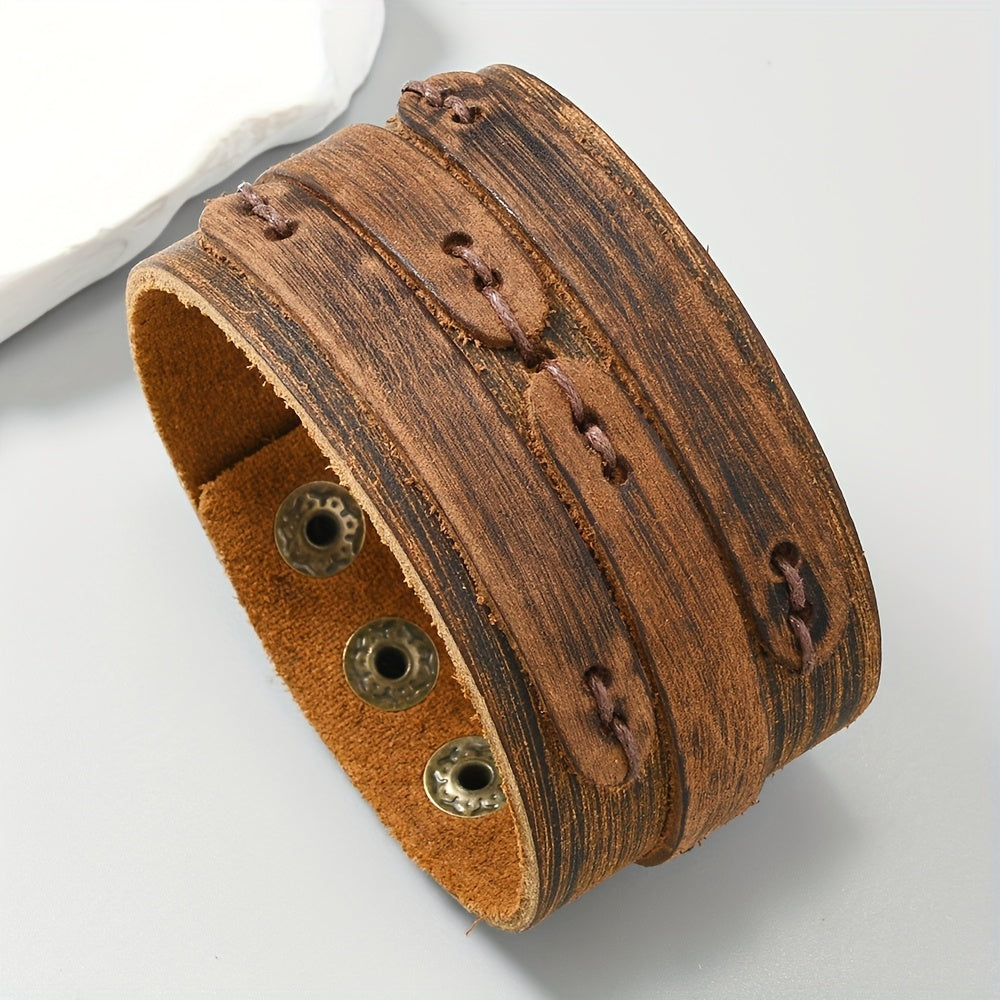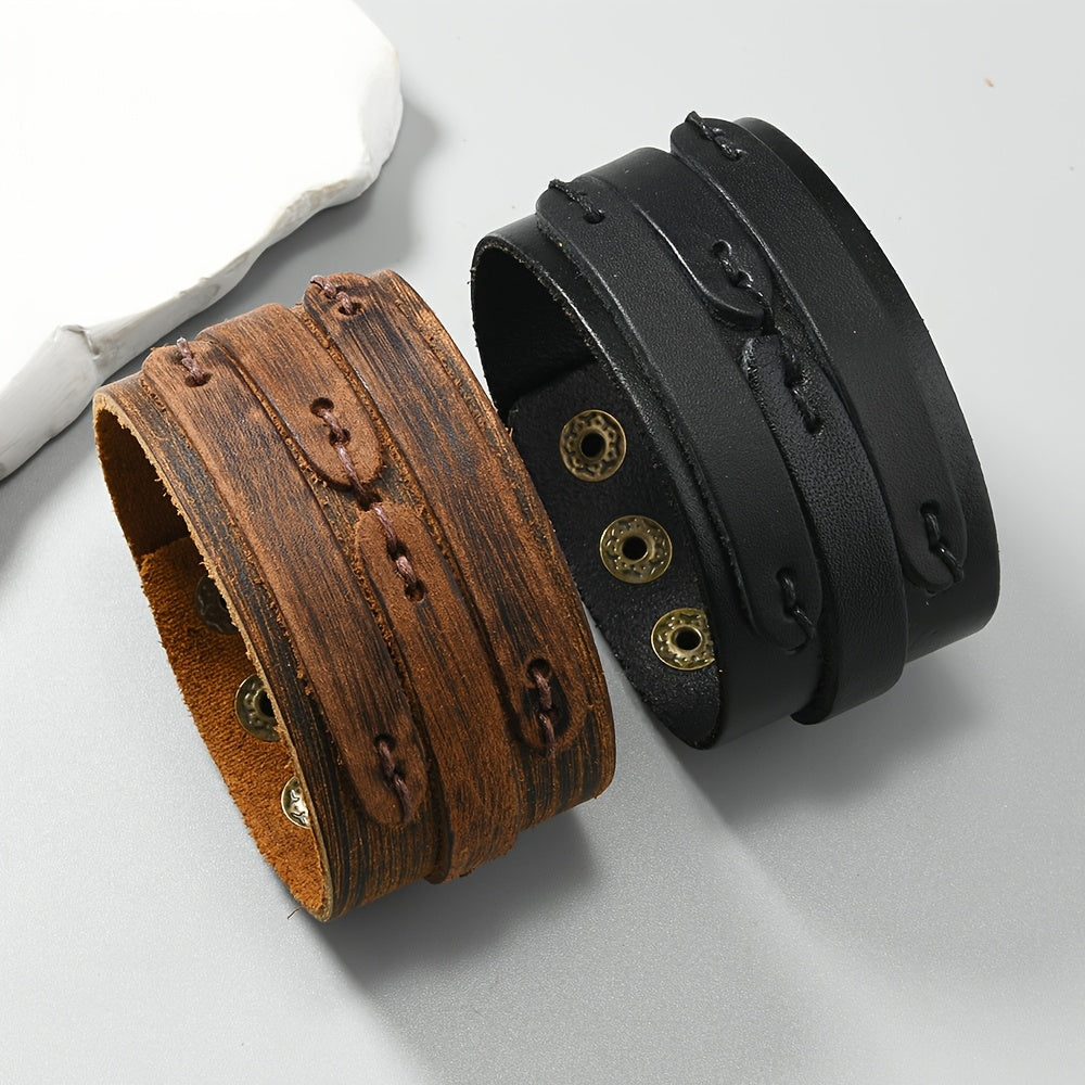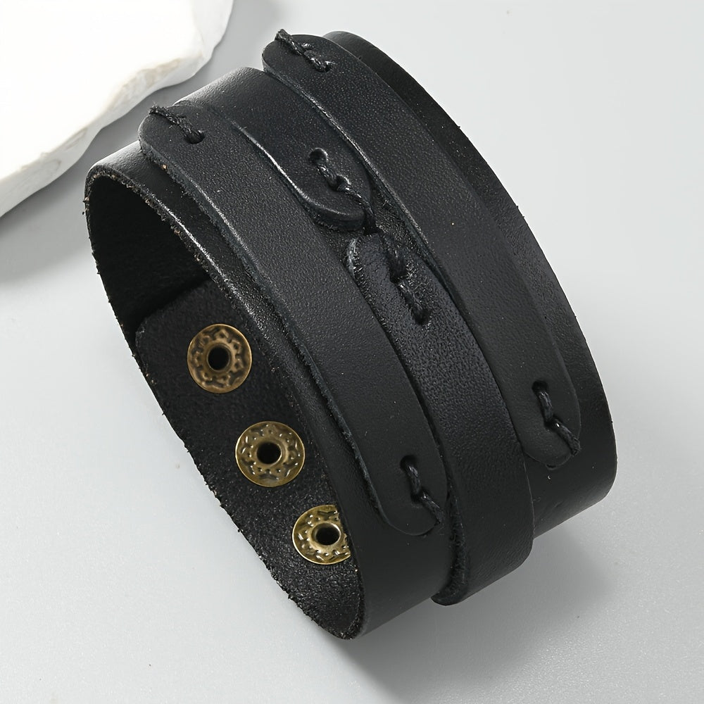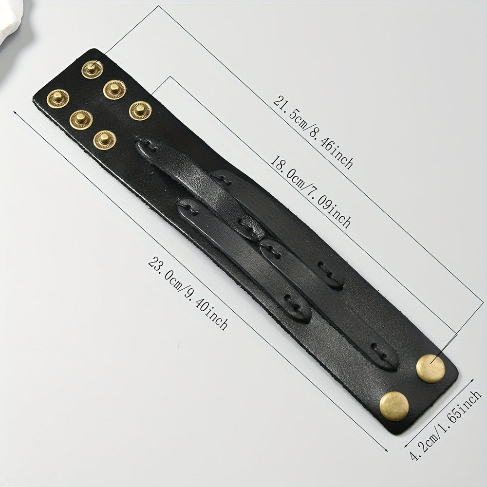 This adjustable wristband is a great accessory for Halloween, Mardi Gras, or a special gift for Father's Day. Made of high-quality leather, this non-magnetic bracelet exudes a vintage punk style.