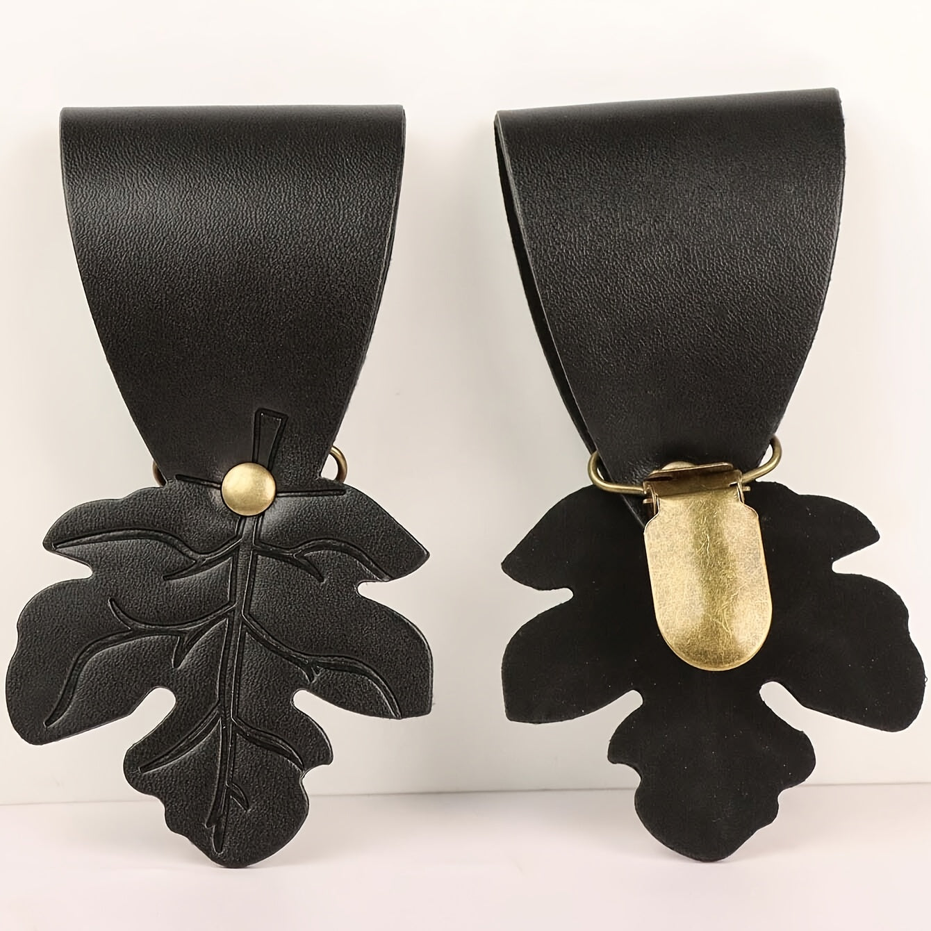 Add a touch of punk style to your outfit with this leaf-shaped skirt hike clip harness belt featuring rivet details. Perfect for Renaissance or Medieval themed events.